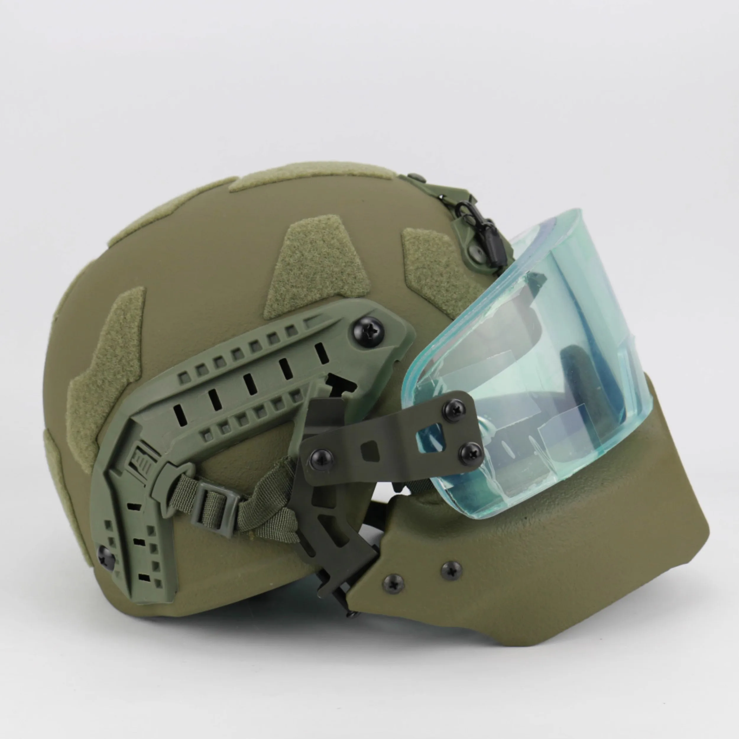 Material: Carcasa del casco: Arámide; Protector facial inferior: UHMWPE; Visera: Tejido balístico híbrido