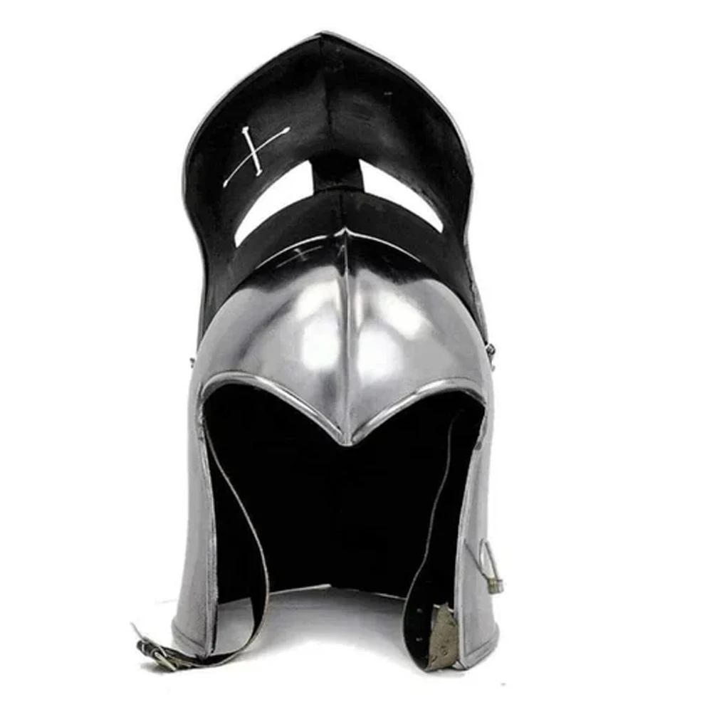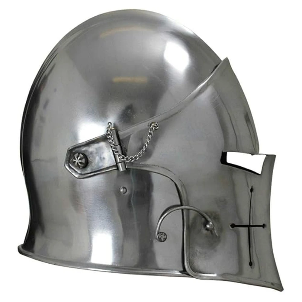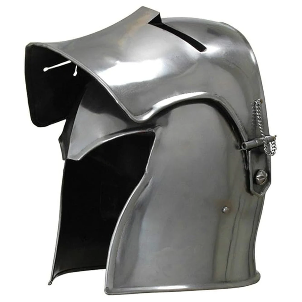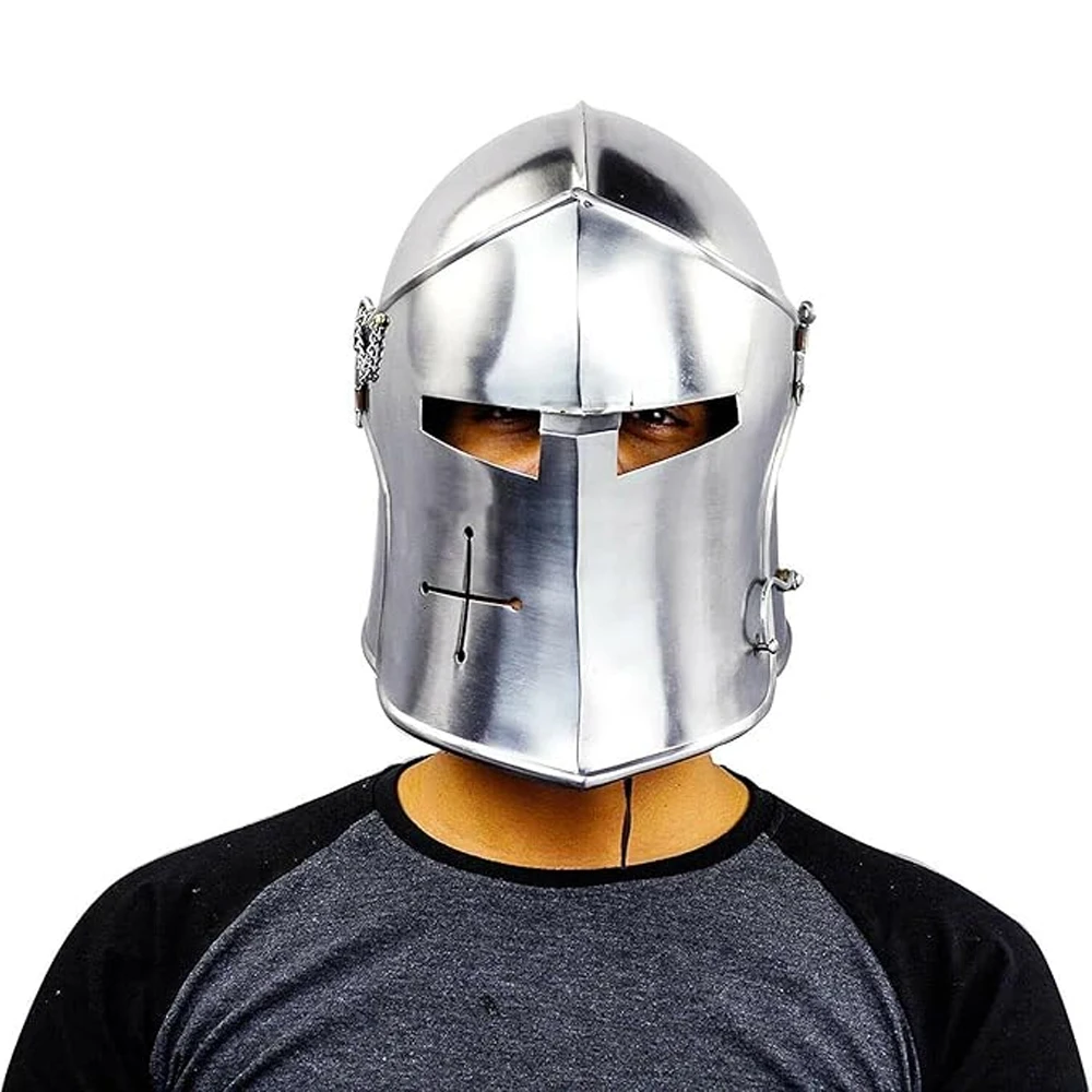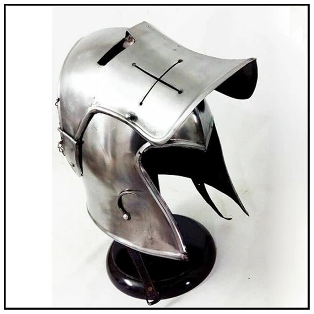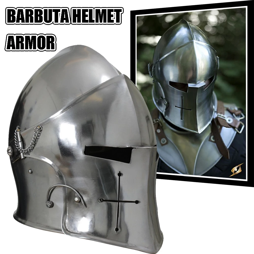 Casco Barbuta de caballero Medieval, armadura de casco Barbuta con visera de acero suave plateado para Cosplay y usable