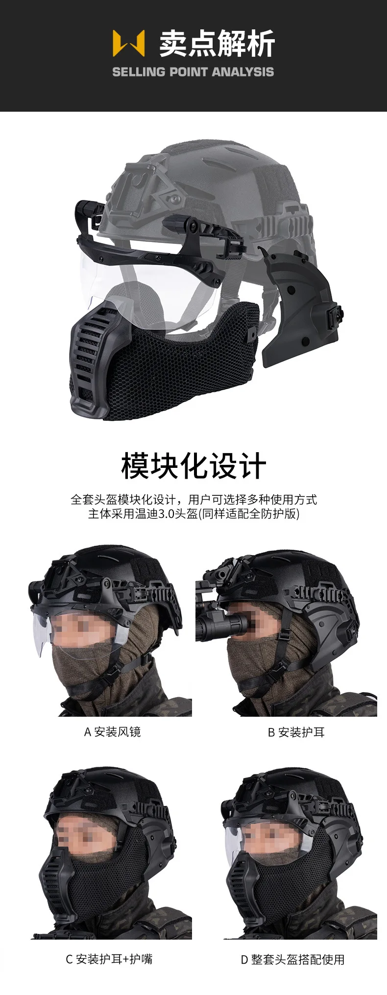 Casco de camuflaje de protección total Wendy 3.0 con visera y gafas