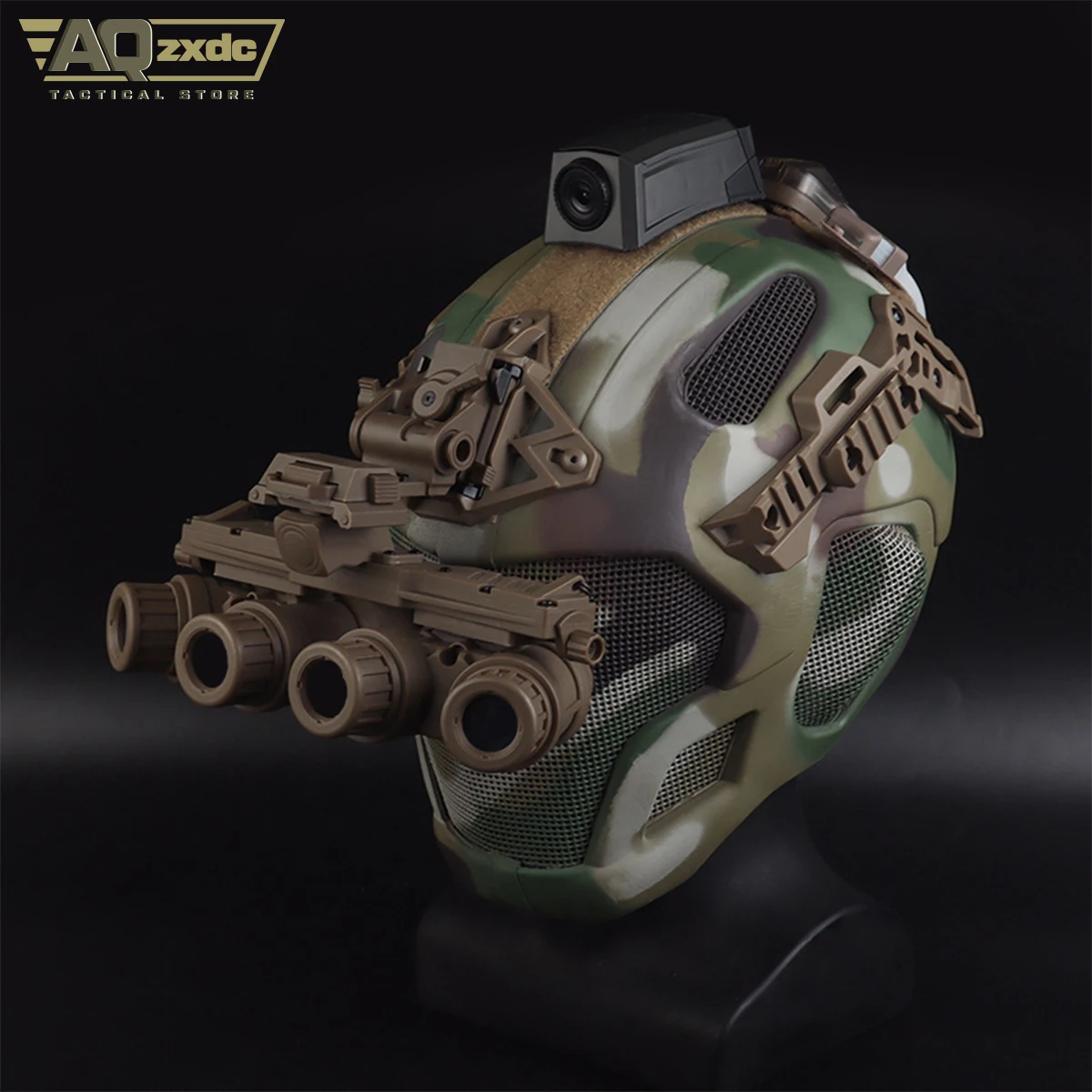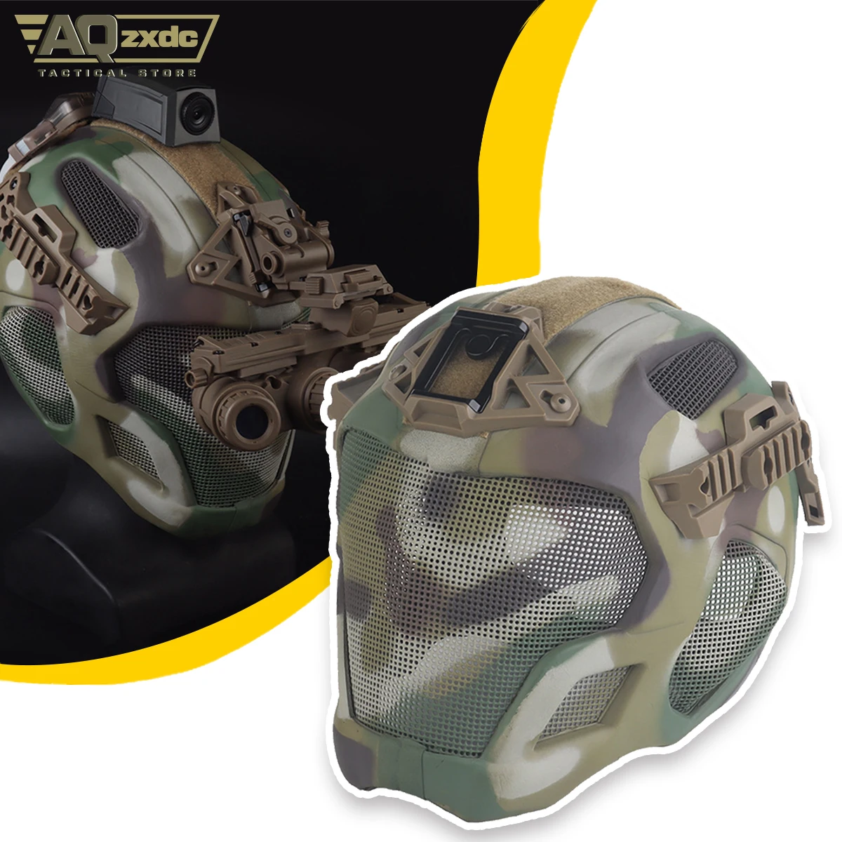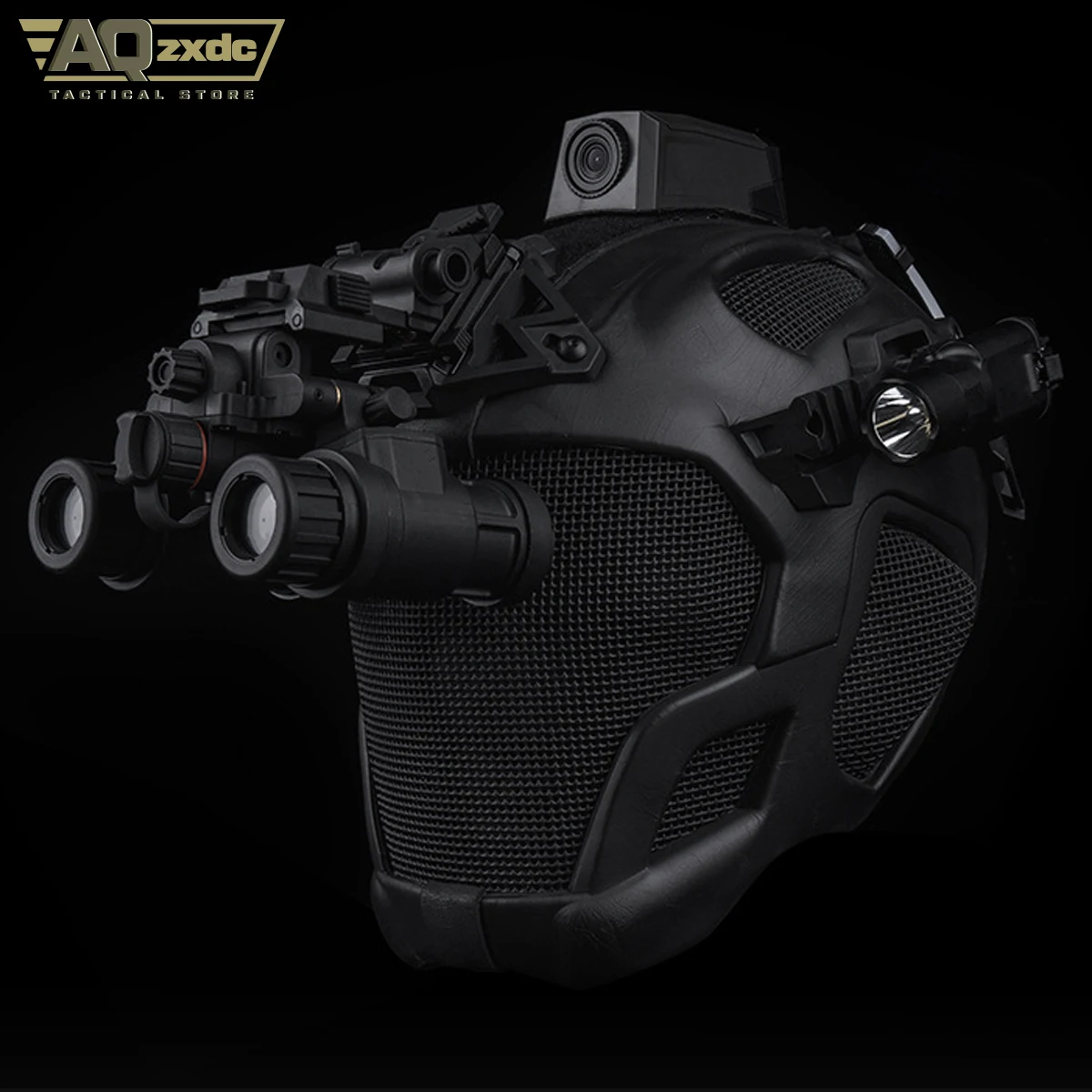 Casco de camuflaje táctico transpirable de protección completa W23 con Base de visión nocturna, rieles de doble cara para instalar faros