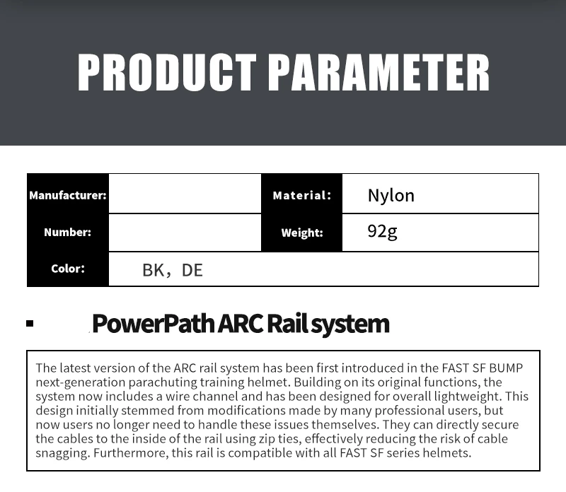 Riel de arco de casco de corte alto FAST SF de caza compatible con casco FAST, riel de arco multifuncional, enrutamiento oculto de entrenamiento de Airsoft