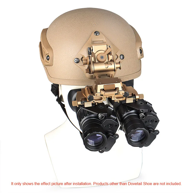 El PVS-14 "Colgantes" se puede integrar y operar con un monocular/PVS-14 a través de montaje abatible o puente Wilcox.El brazo PVS-14 ofrece capacidades de ojo izquierdo y derecho, proporcionando una plataforma de montaje resistente y varios puntos de ajuste para una combinación precisa.Utilizando la misma interfaz de smoking, como se ve en el soporte abatible para armas, este brazo pasa sin problemas del casco al arma.