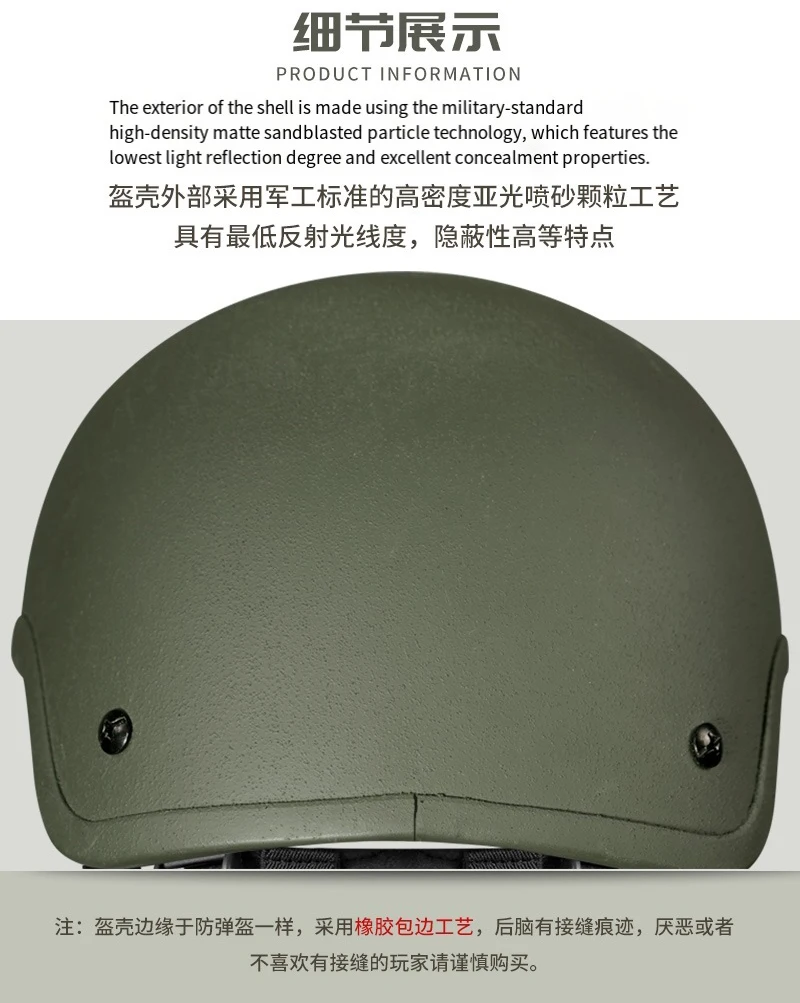 Nota: El borde de la carcasa del casco adopta un proceso de envoltura de borde de goma, como el de un casco antibalas, y hay marcas de costura en la parte posterior de la cabeza. Los jugadores que no les gustan o están avanzados de las costuras deben comprar con precaución.