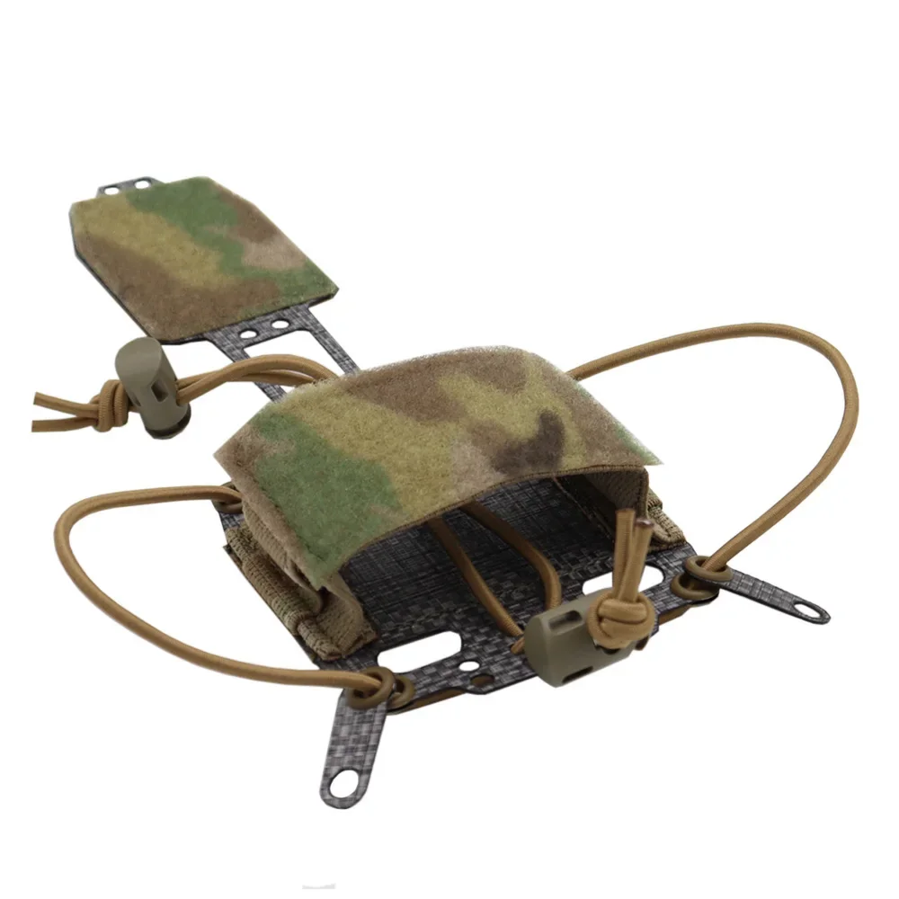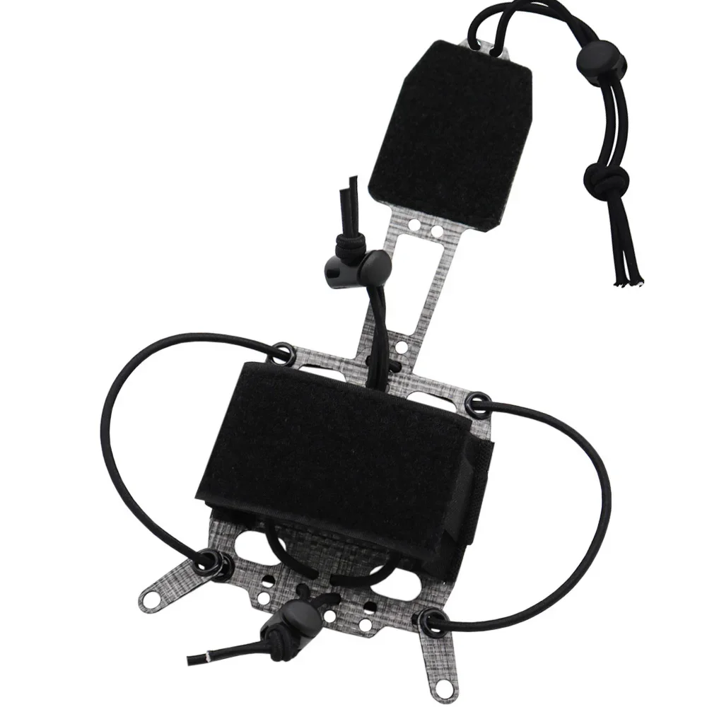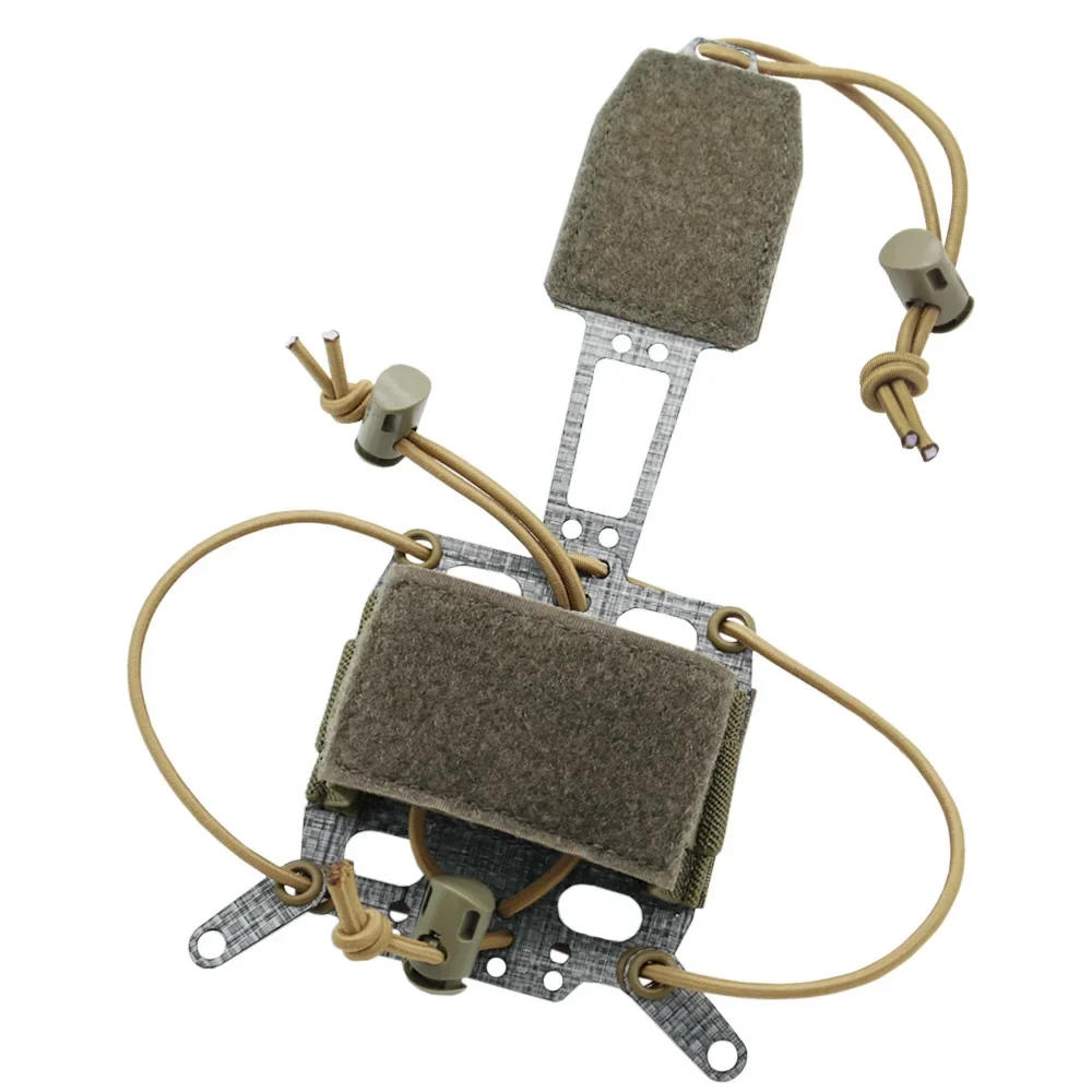 El paquete de baterías se sujeta en una funda que se fija al casco con velcro.Dos anclajes laterales se fijan al casco con pernos de la correa de la barbilla o mediante rieles accesorios.El tercer anclaje opcional es un puente firme a un soporte estroboscópico IR que se puede ajustar y fijar en la parte superior del casco con velcro.