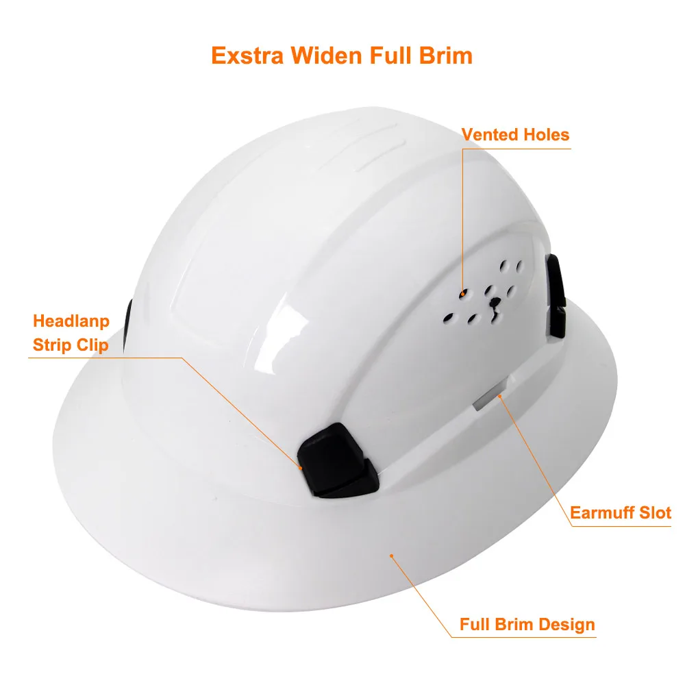 Casco duro de ala completa CE, casco de seguridad para ingeniero de construcción, suspensión de 6 puntos, gorra de trabajo Industrial transpirable, protección para la cabeza ANSI