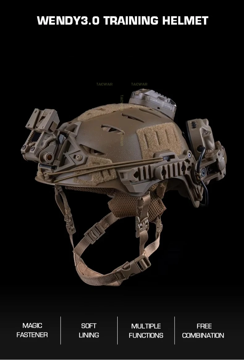 Casco de entrenamiento táctico Wendy 3,0 con almohadilla esponjosa doble, suspensión colgante, correa para la barbilla para caza Airsoft