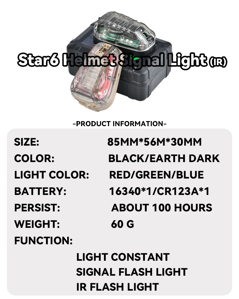 Casco HEL STAR 6 GEN3 Airsoft, luz azul, verde, rojo, señal IR estroboscópica, lámpara de Flash impermeable, accesorios de equipo táctico NGAL PEQ