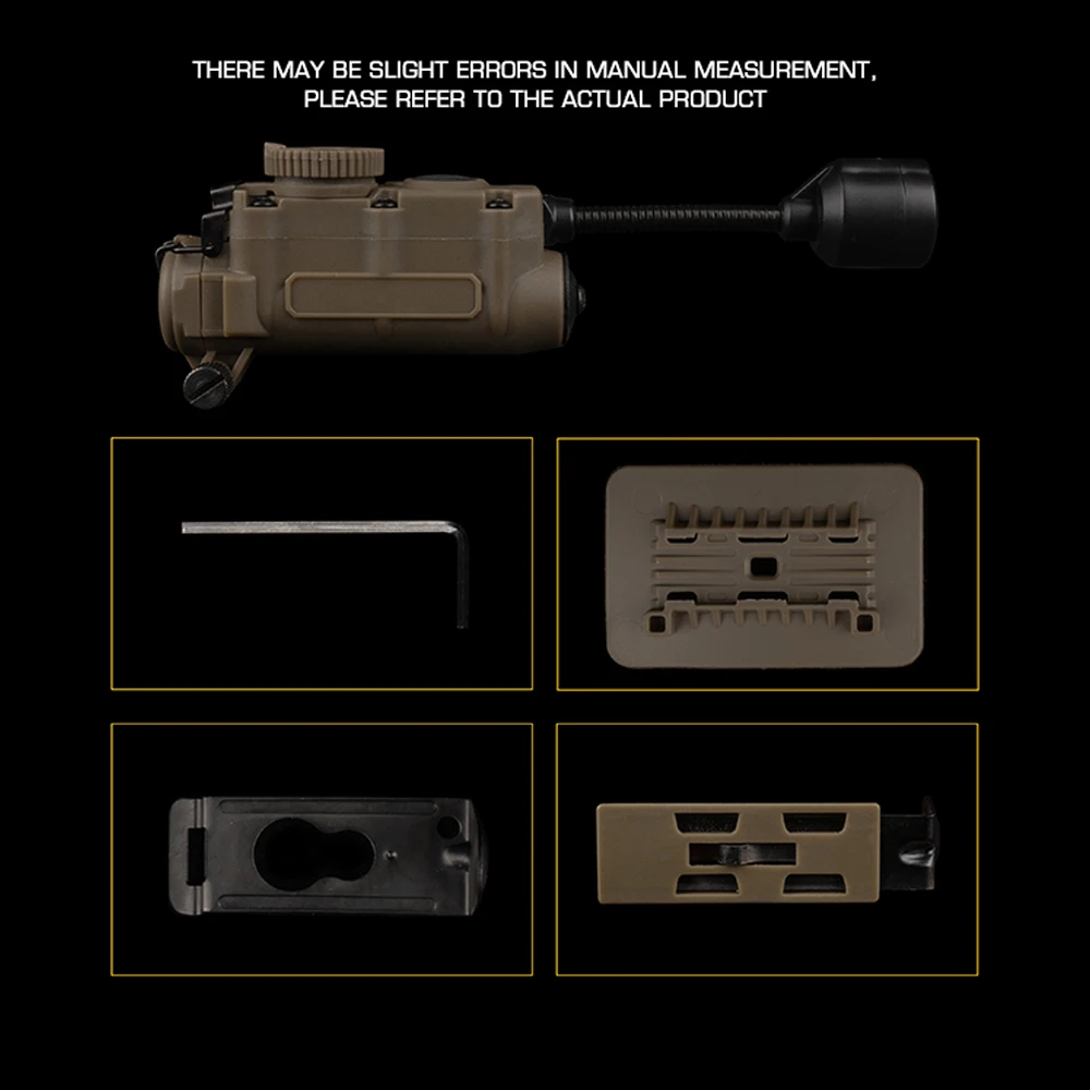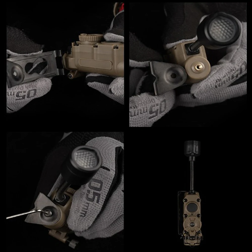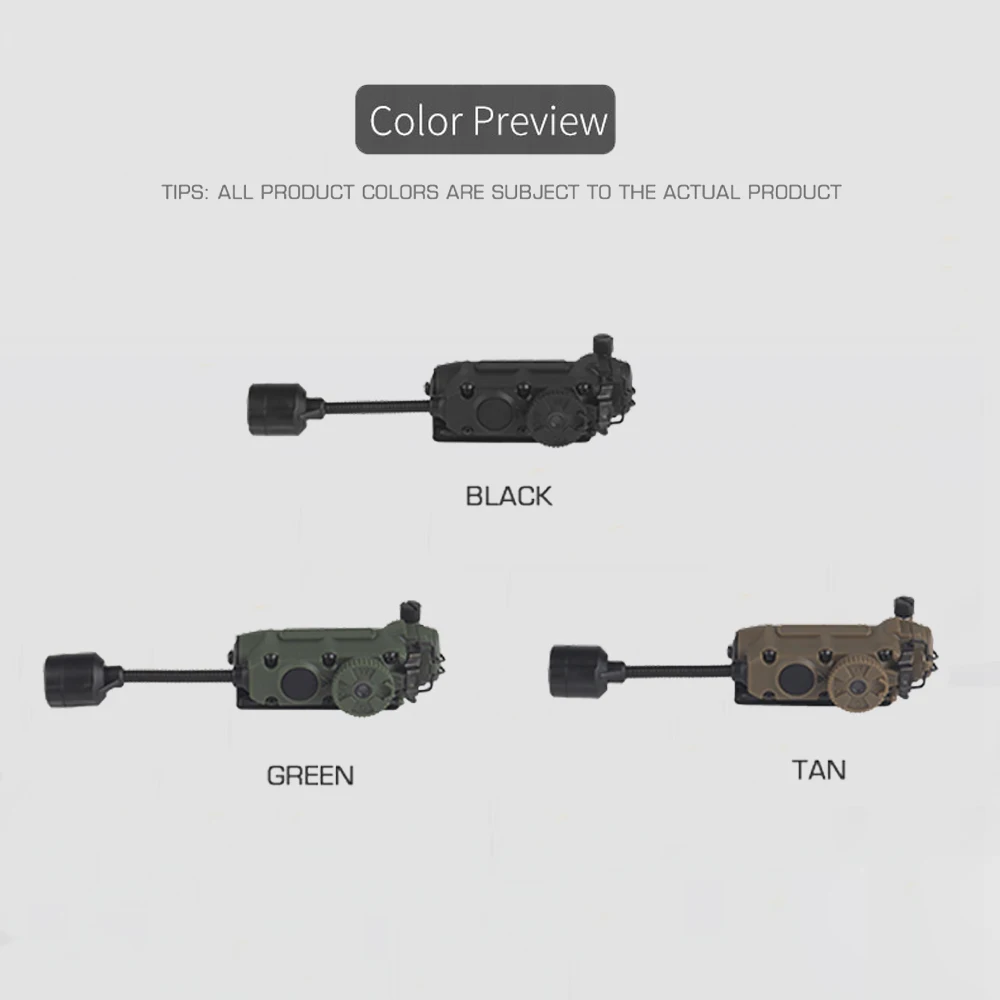 Nombre del producto: Lámpara de casco multiusos con enrollador lateral Número de artículo.:LT-11 Tamaño del producto: 16*8,5*5,5 cm Peso neto del producto: 0,08 kg. Peso bruto del producto: 0,206 kg. Color del producto: NEGRO/TAN/VERDE Material principal: nailon Escena aplicable: caza, deportes al aire libre y otros juegos tácticos Airsoft CS, etc.