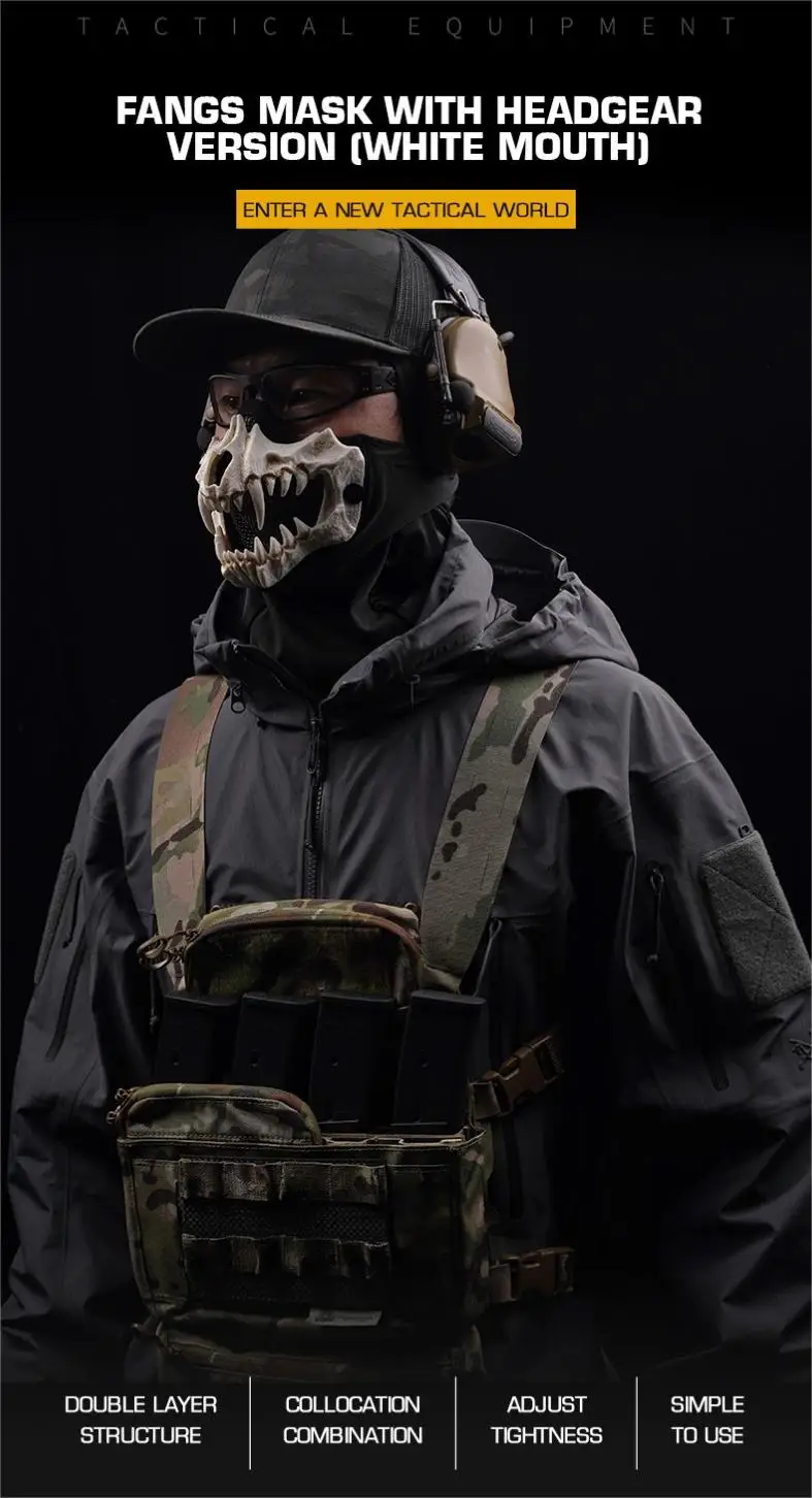 3. Ajuste ajustable:Equipada con una hebilla de bloqueo segura, esta máscara de calavera con colmillos de terror se puede ajustar fácilmente para adaptarse perfectamente a varios tamaños de cabeza, proporcionando una experiencia personalizable y cómoda para todos los usuarios.