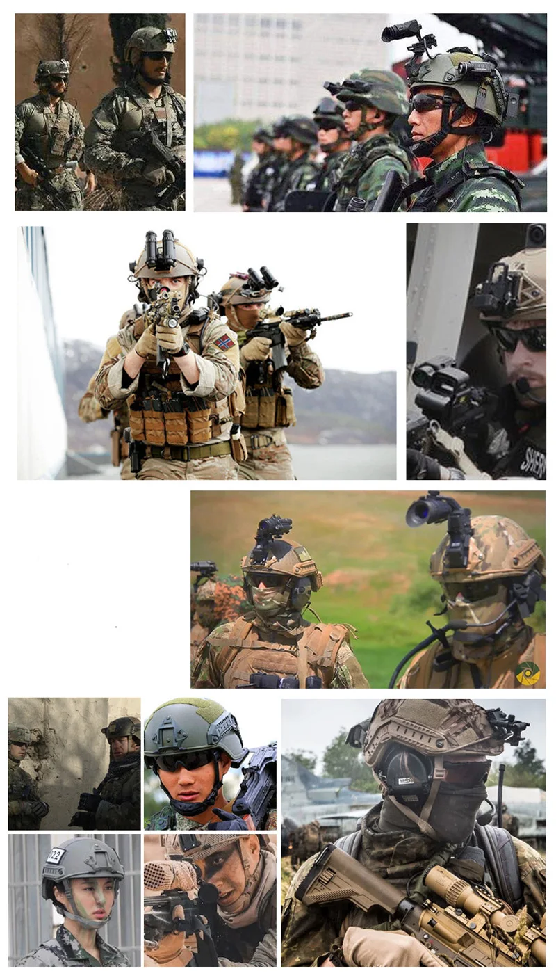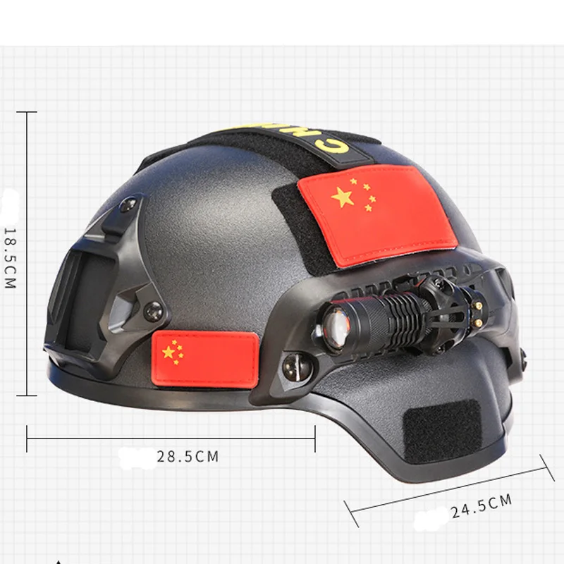 Con los paneles de cinta mágica que corren a lo largo de la parte superior, trasera y lateral del casco, puede agregar diferentes parches preferidos por el usuario.Un soporte frontal le permite conectar soportes para ópticas, cámaras y luces de visión nocturna.La estabilidad adicional para las gafas proviene de dos bandas elásticas y los rieles laterales del casco le permiten agregar diferentes accesorios tácticos.Además, su estilo militar le brinda una buena protección contra lesiones por impacto intenso y traumatismos contundentes.