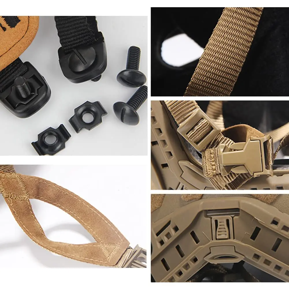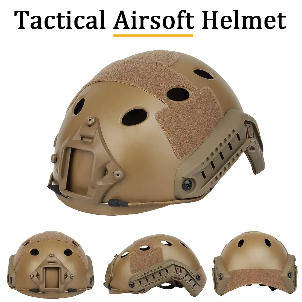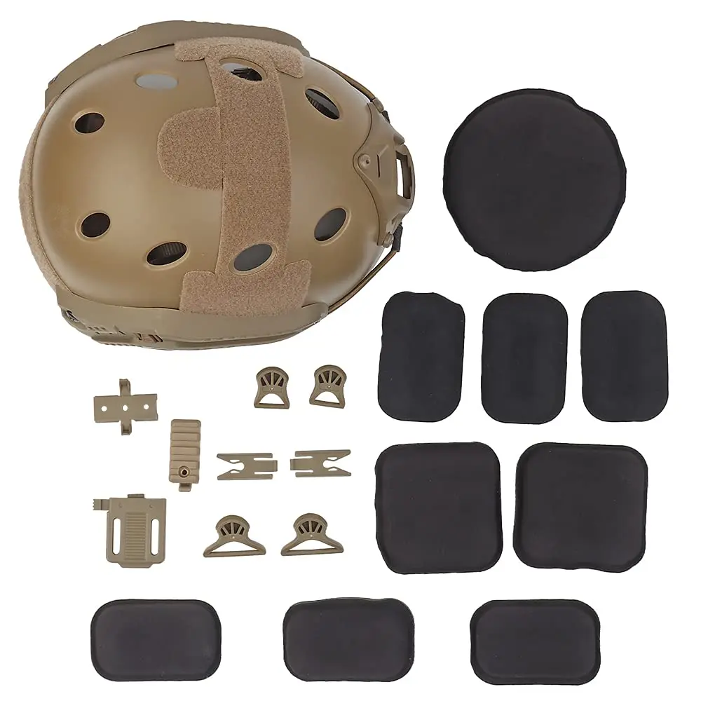 ➤ Casco FAST tipo PJ: material ABS. Con un peso de solo 0,65 KG, con ocho orificios de ventilación adicionales en la parte superior, es ideal para todo tipo de acción y combate rápidos. La funda del casco incluida está hecha de nailon 800D, y el cordón elástico puede ayudar a fijar varios accesorios tácticos. Adecuado para la circunferencia de la cabeza 52-66cm (20,4-26 pulgadas).