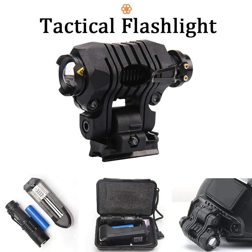 ➤ Linterna Zoom: tres ajustables: luz fuerte, poca luz, estroboscópica. Viene con un compartimento de carga * 1, batería * 2, caja de almacenamiento * 1. Elimina el problema del reemplazo frecuente de la batería. Clip de linterna cinco ajustable, adaptable a todas las linternas de calibre 20-25mm.