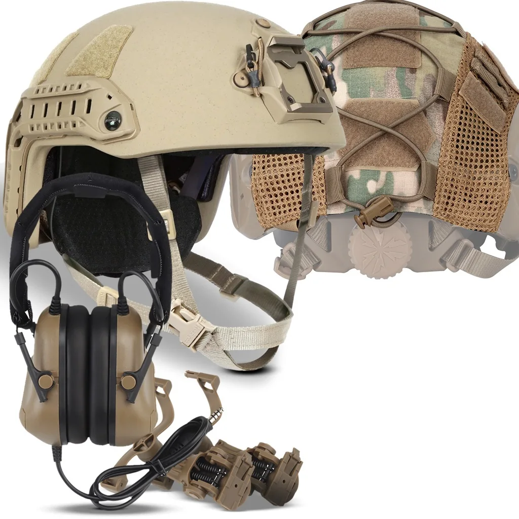 Casco de protección rápida NIJ IIIA, captación de sonido táctica y auriculares con cancelación de ruido con soporte de montaje en riel, montaje NVG de aleación de aluminio