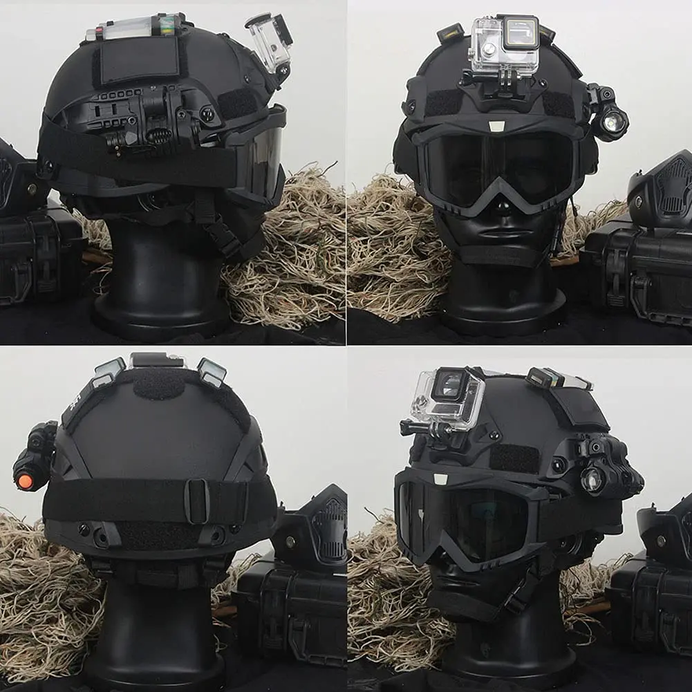 ♥ Casco táctico RÁPIDO: el material principal es plástico ABS. El material principal del cojín EPP antideformación es espuma de polipropileno y hay una capa de compuesto de vinilo de baja densidad (LDV) fuera de la almohadilla, absorbente del sudor y transpirable.