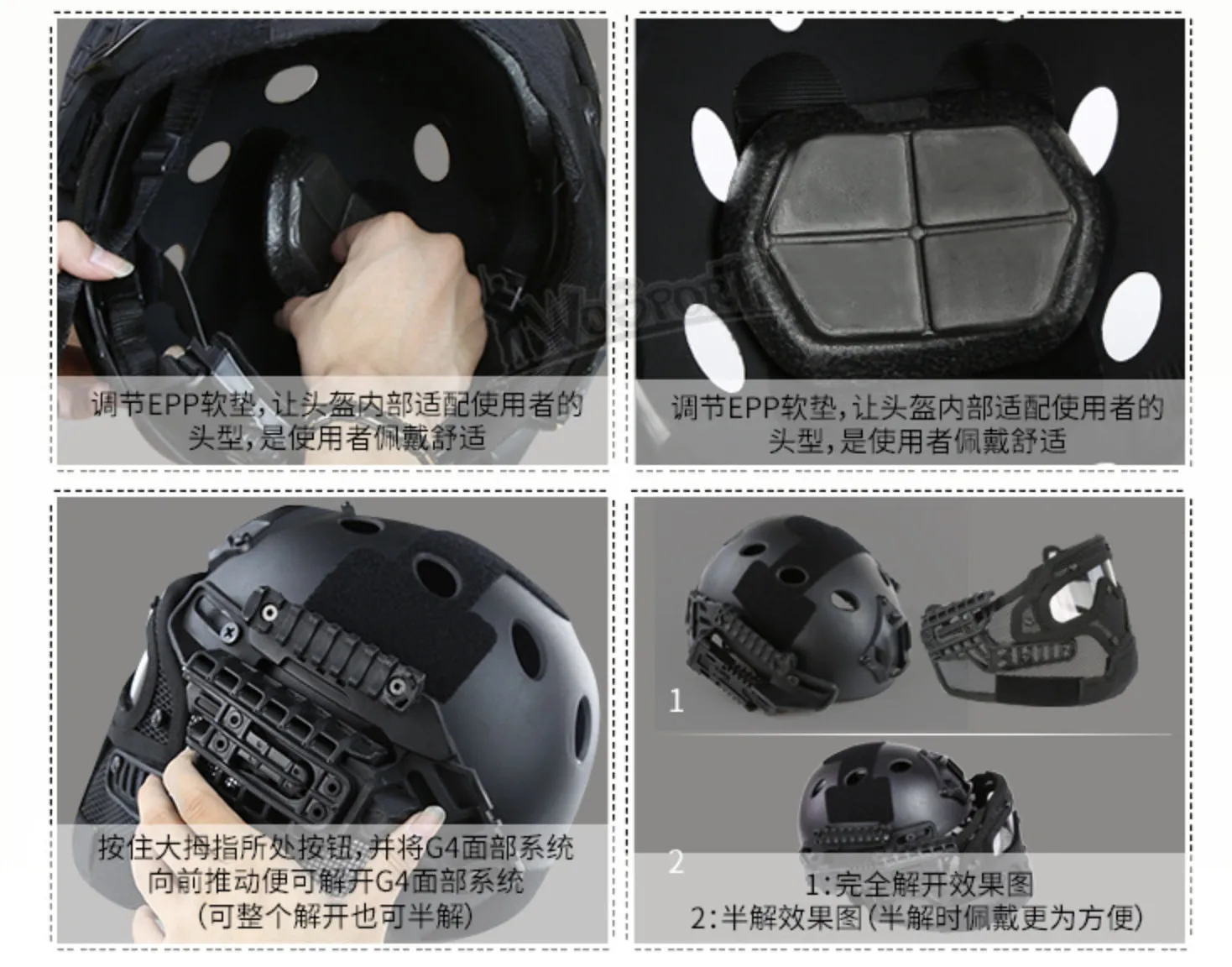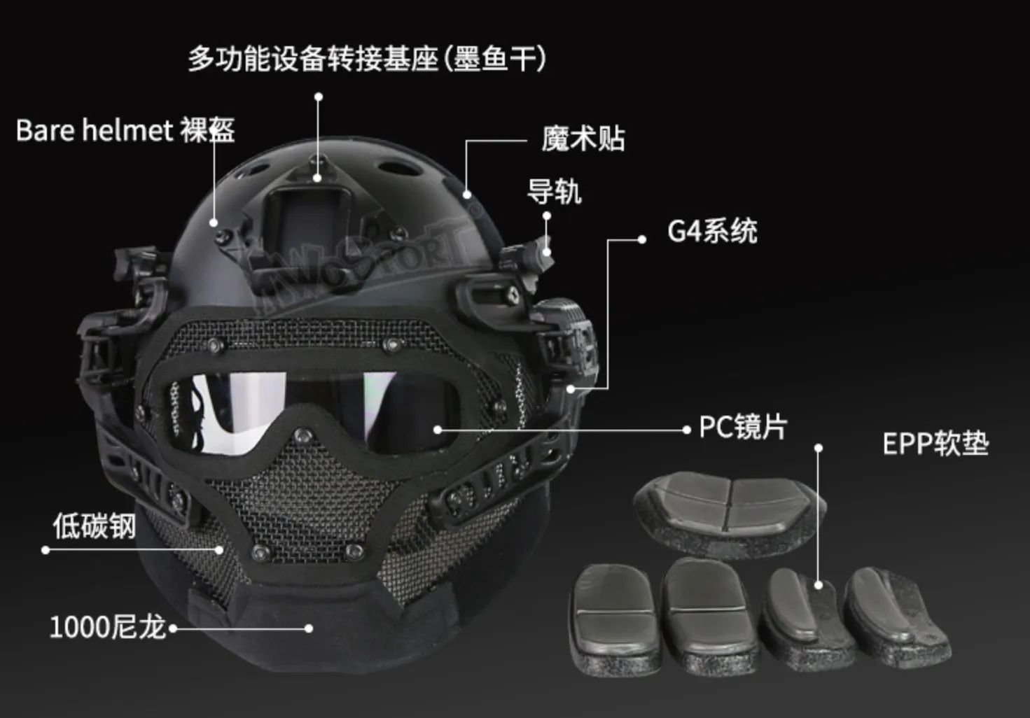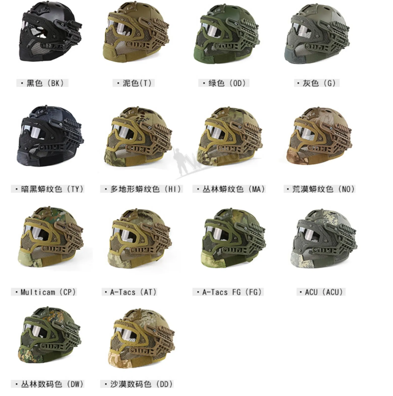 Casco protector táctico al aire libre Máscara de alambre Camuflaje de alta gama de una pieza