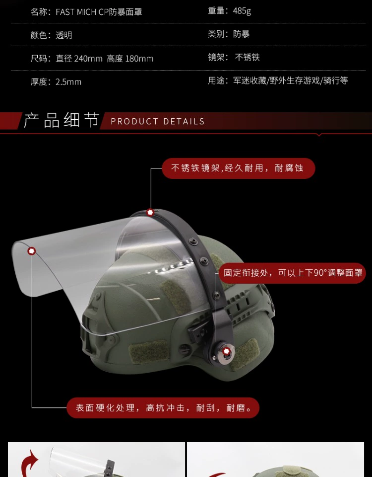 Casco RÁPIDO protección de alta resistencia antidisturbios MICH mascarilla transparente a prueba de explosiones
