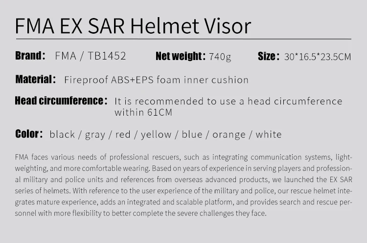 Casco de rescate de emergencia FMA, protector de seguridad ligero, ajustable, TB1452