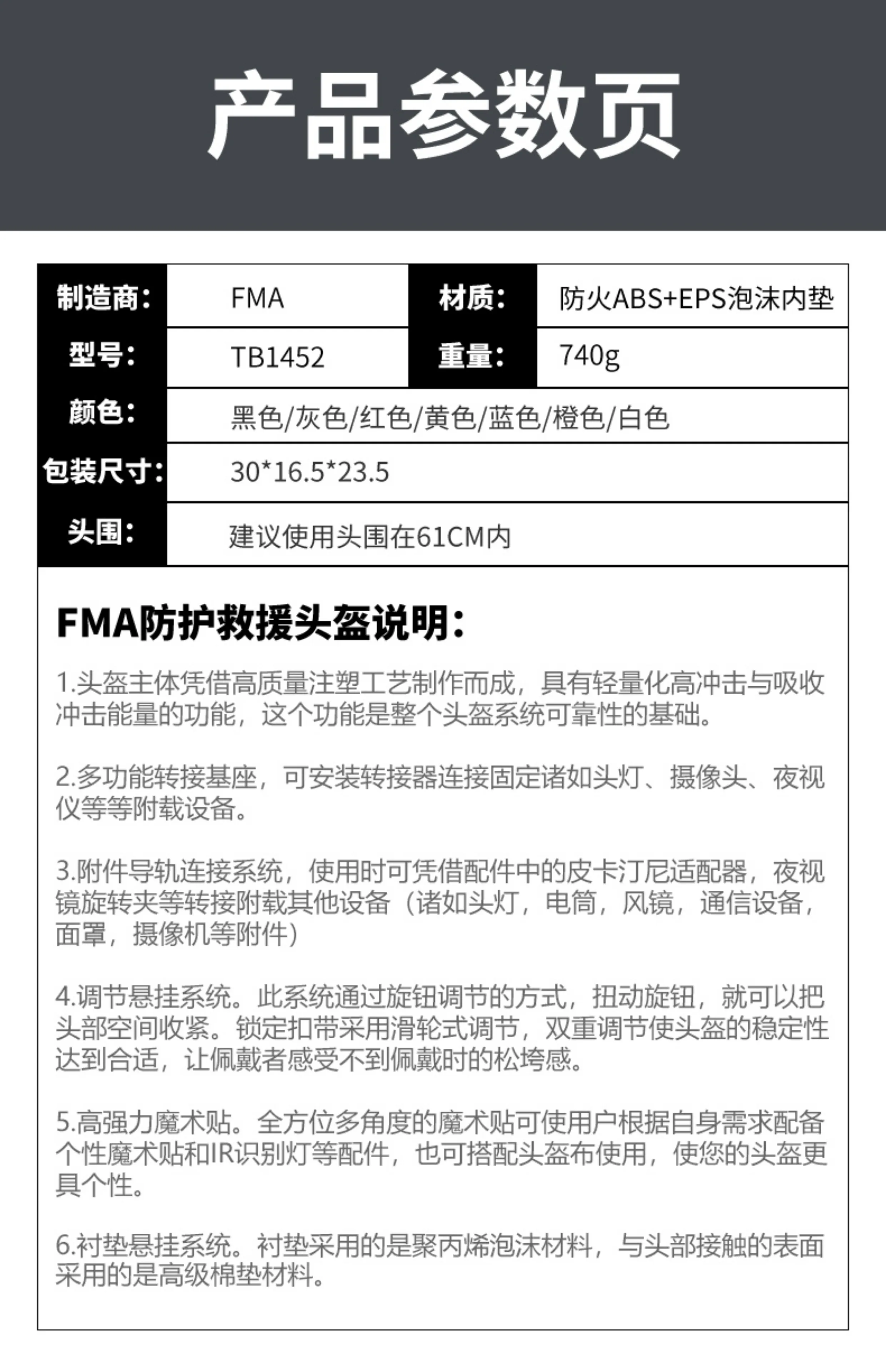 Casco de rescate de respuesta de emergencia FMA casco ligero casco protector de seguridad ajustable TB1452