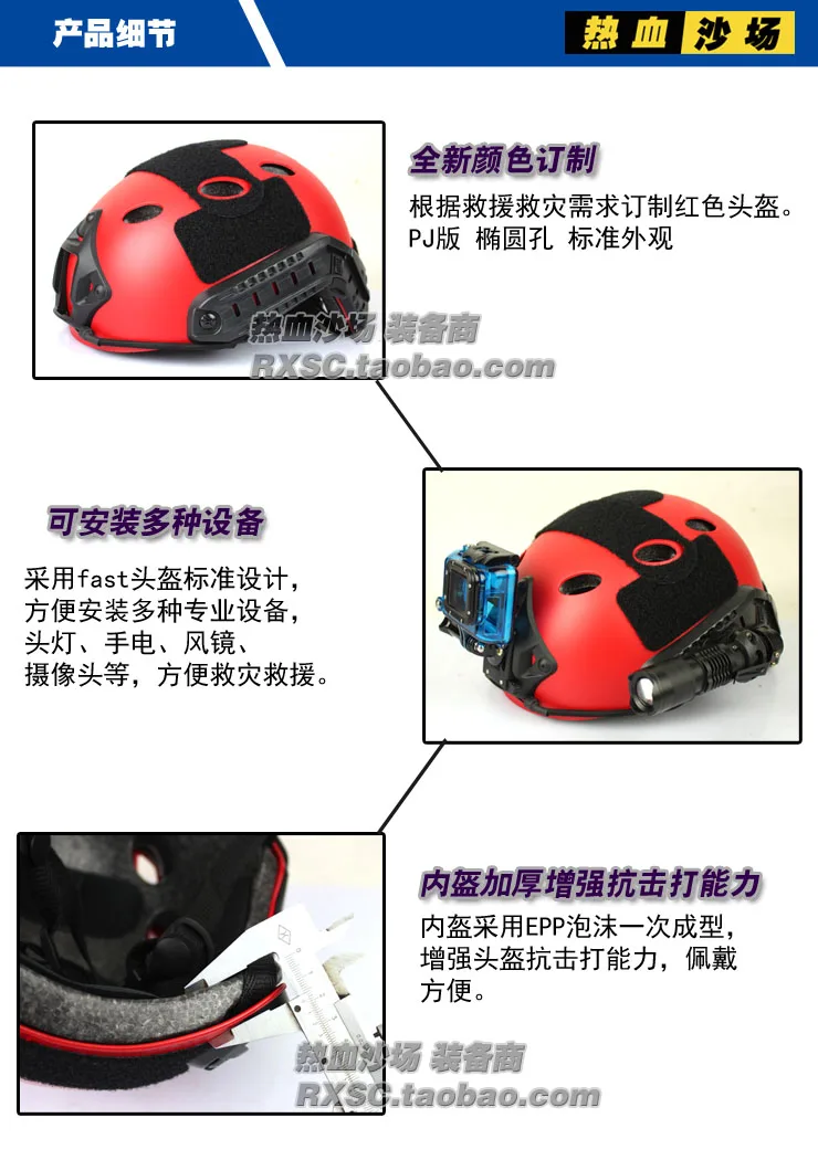 Casco ligero de rescate rojo versión MICH/FAST/PJ Casco táctico de doble capa