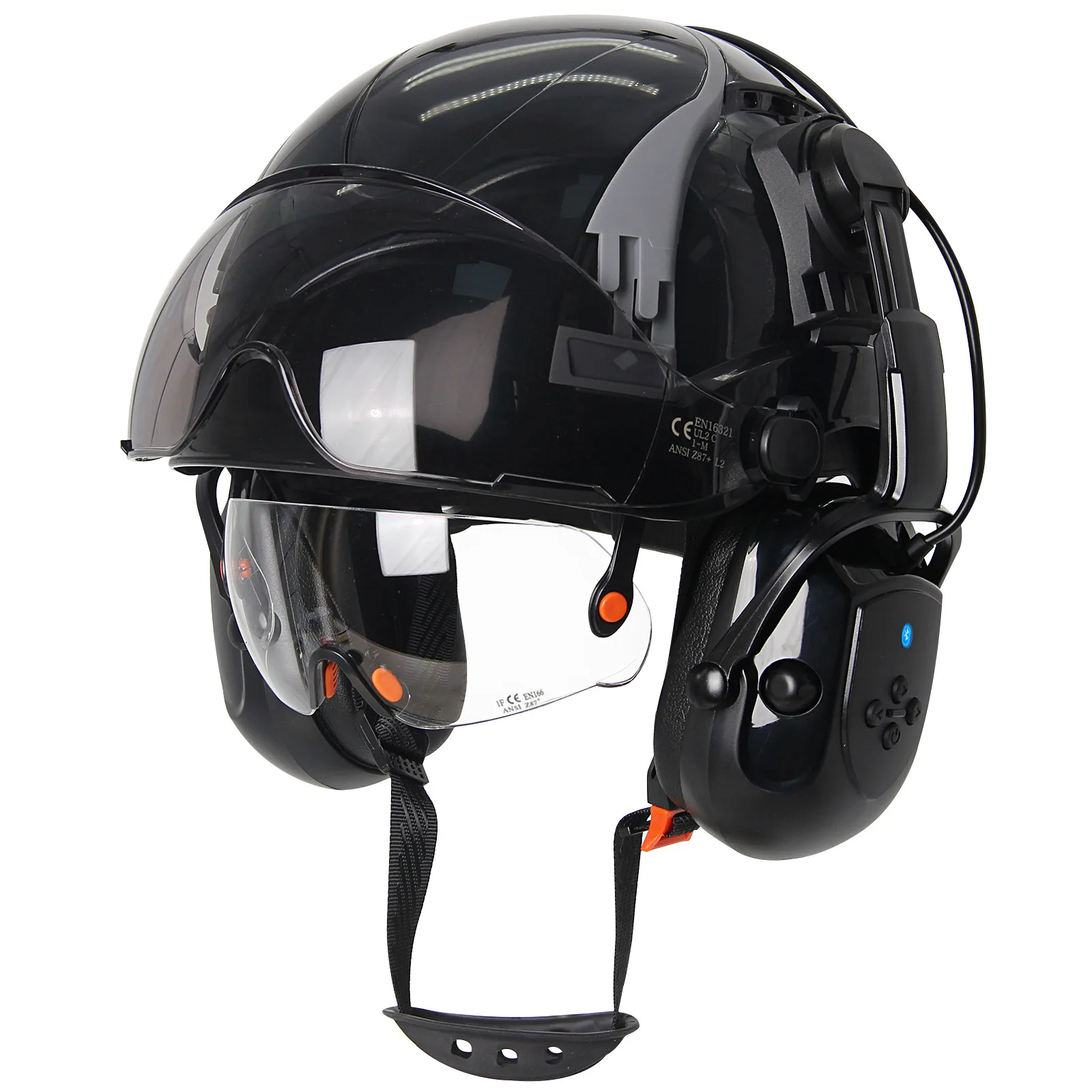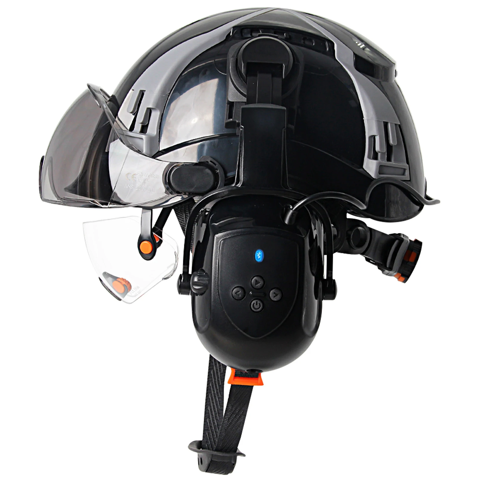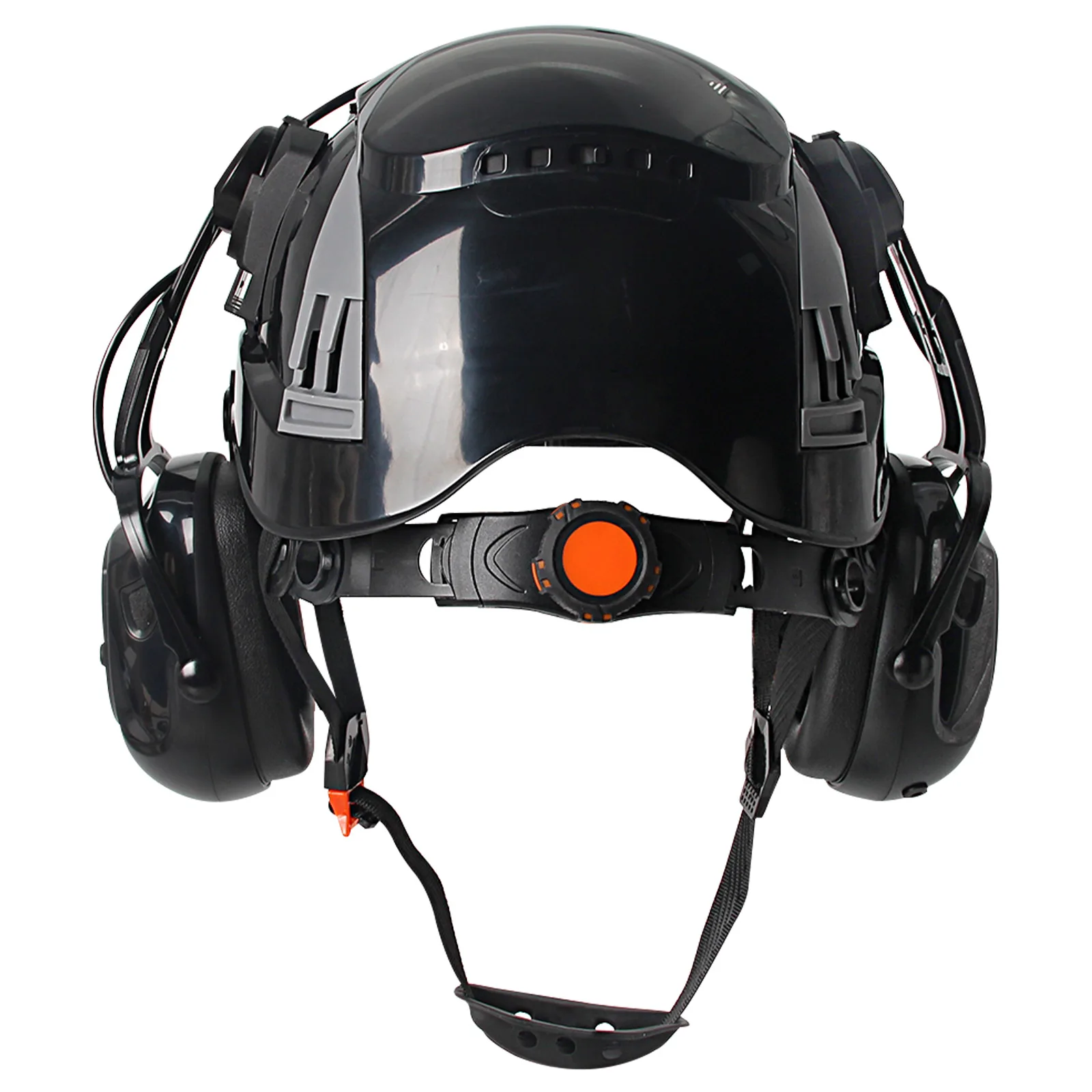 Multifuncional y ampliamente utilizado: casco duro transpirable de perfil bajo con visera y orejeras, ideal para la protección de la cabeza, los ojos y los oídos, adecuado para casco de trabajo de construcción, casco duro, casco de seguridad y rescate, casco de casco duro de trabajo de árboles forestales, carpintería, maquinista, trabajos de altura y andamios, adecuados para cualquier comercio que requiera protección general para la cabeza.Viene con un par de auriculares que proporcionan hasta 23 dB NRR para proteger los oídos de daños causados por ruidos fuertes.