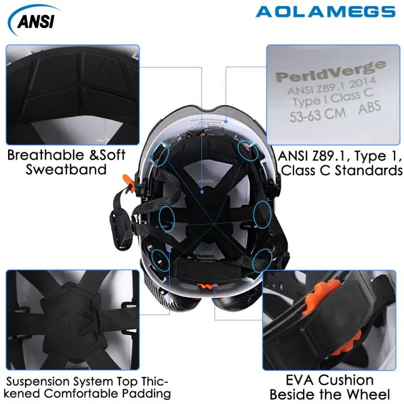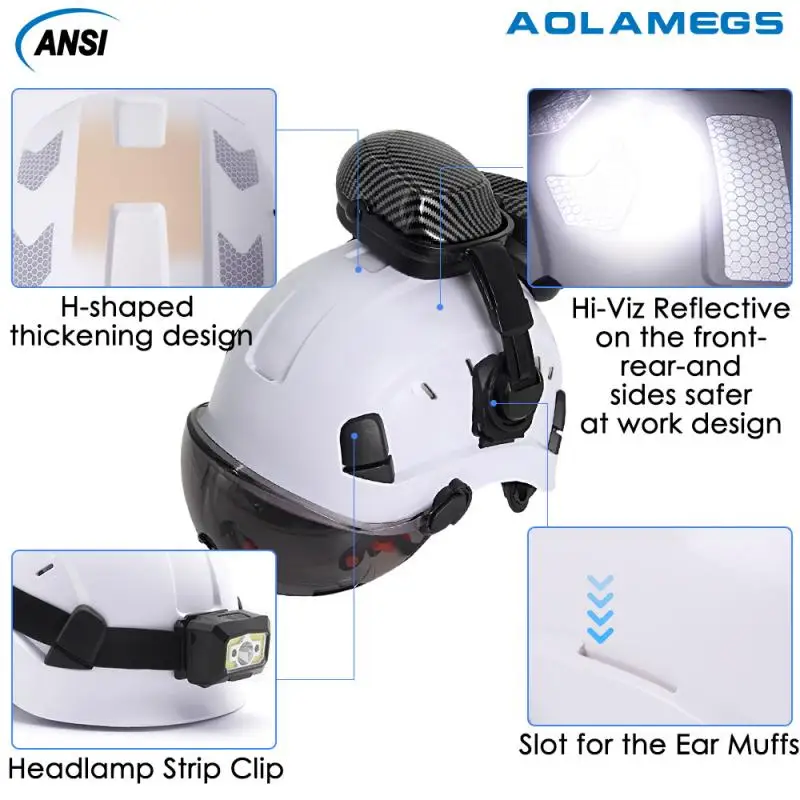 El diseño especial de ranuras laterales garantiza un casco de seguridad para instalar protección auditiva, protector facial y Faro por DIY fácilmente, lo que permite más protecciones en construcción, minería, escalada y equitación