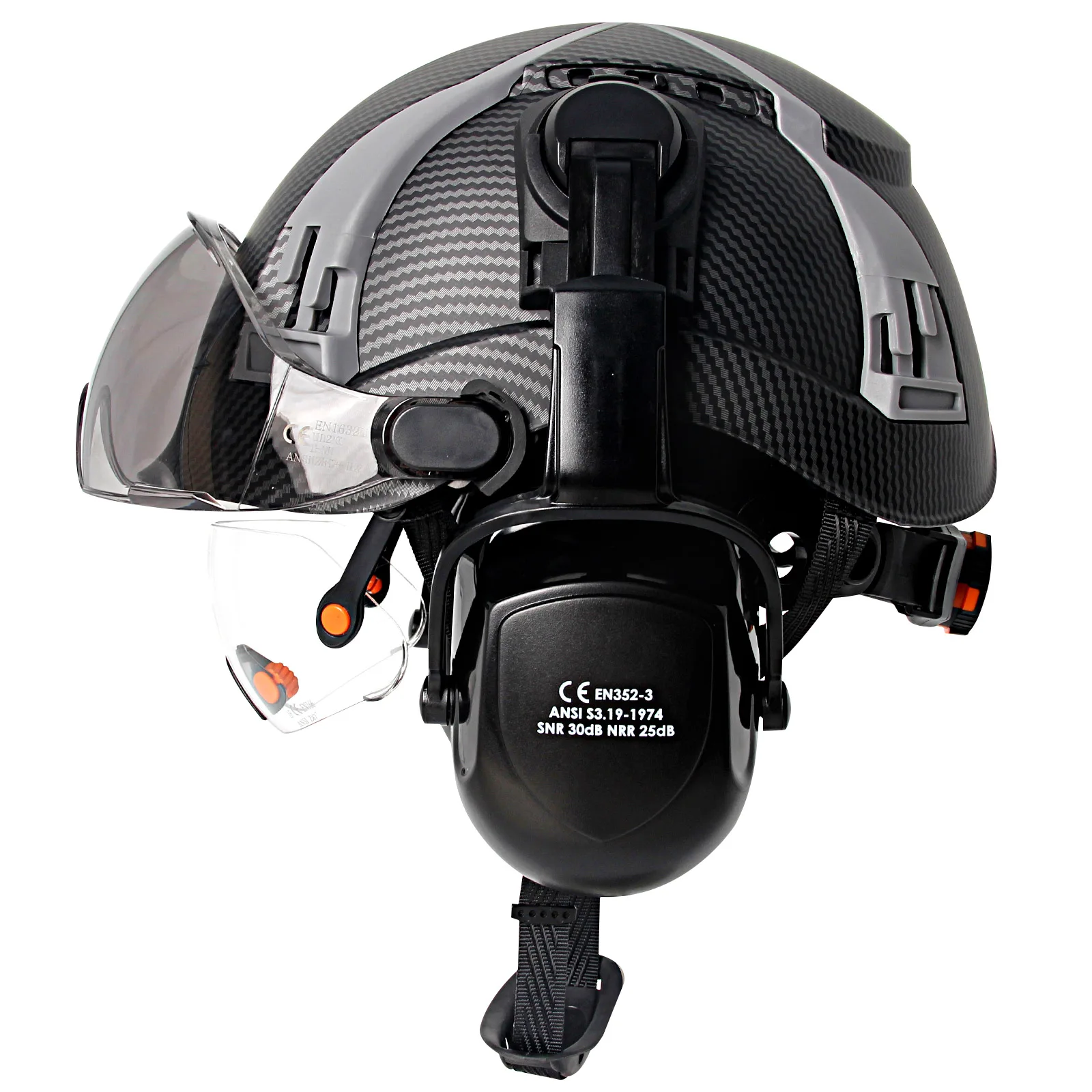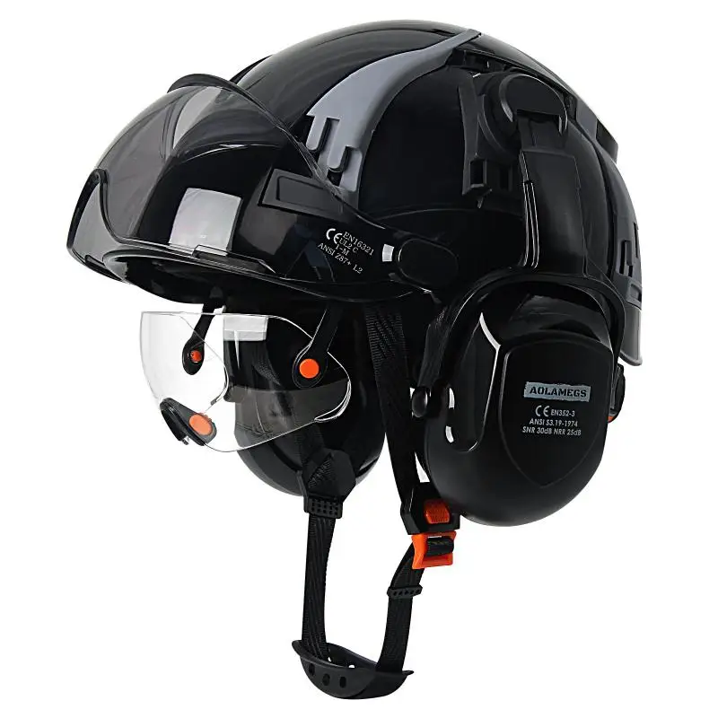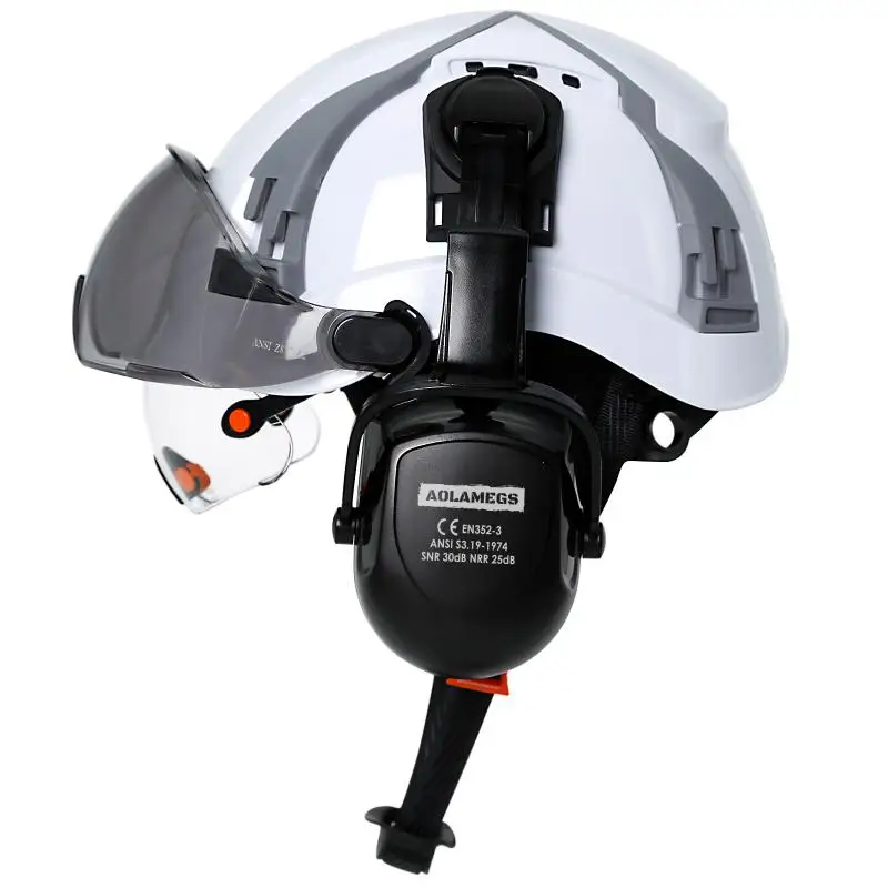 Material: ABS de alta calidadForro: forro de telaChinstrip: correa de gorra en forma de Yinterior: tela de 6 puntosEntorno aplicable: construcción/fábrica/exterior/rescate/equitación.Temperatura: -20℃ a 50℃Tamaño de la cabeza del sombrero: 52-63 cmEl casco cumple:Estándar de la UE: CE EN397: 2012+A1:2012Las gafas cumplen con el estándar de la UE: CE EN166【Kit de casco de seguridad 3 en 1】Casco rígido de construcción certificado OSHA con visera doble y combinación de orejeras para ayudar a completar un completo sistema de seguridad por encima del cuello.Viene con un par de orejeras ajustables para el casco que brindan un ajuste ultrafino y brindan hasta 25 decibelios de NRR para proteger sus oídos de daños causados por el ruido fuerte.Cuando no necesites tu protección auditiva, puedes quitarla.Gira fácilmente el interior transparente a través del humo con el exterior hacia afuera y el exterior tiene buena visibilidad y es resistente a los escombros.