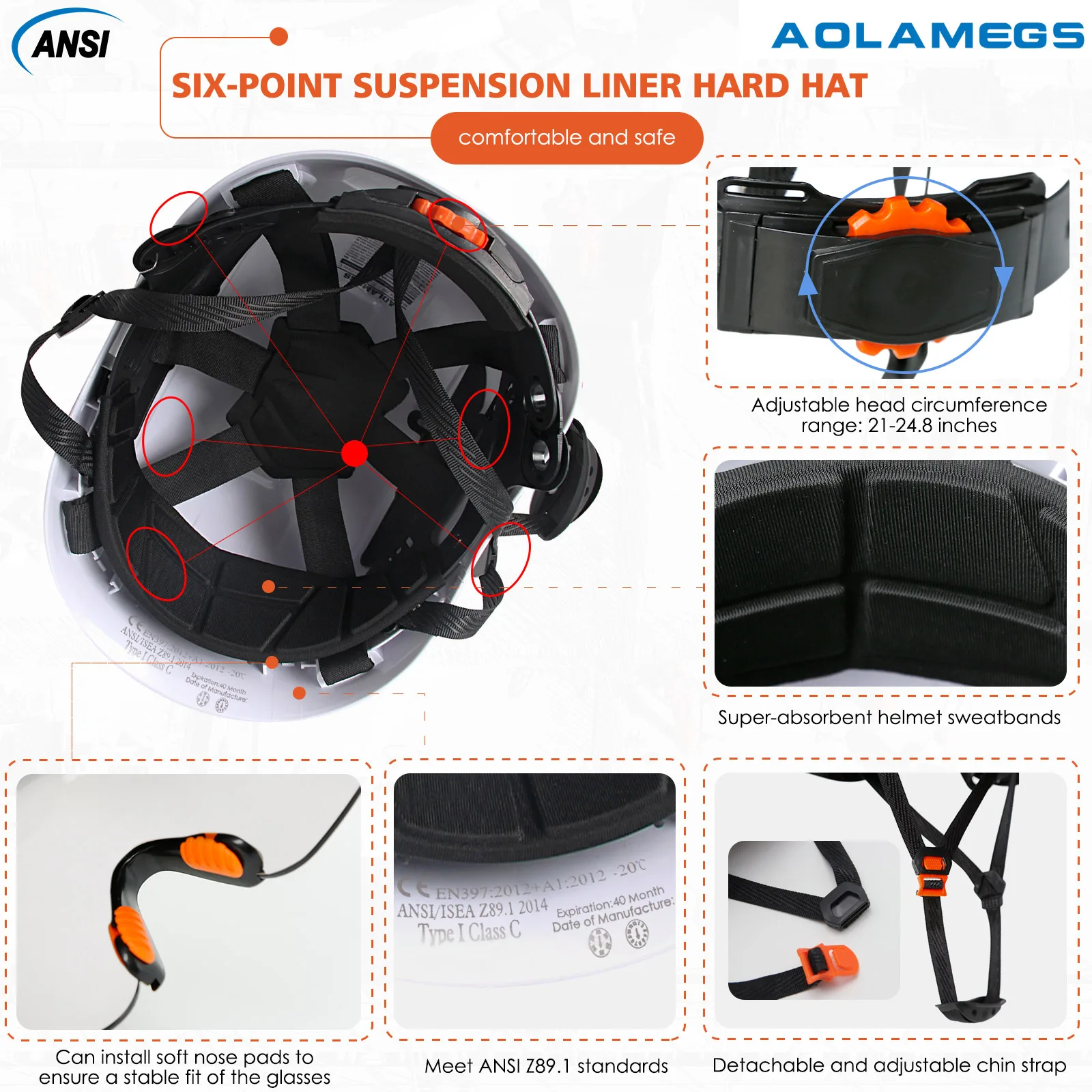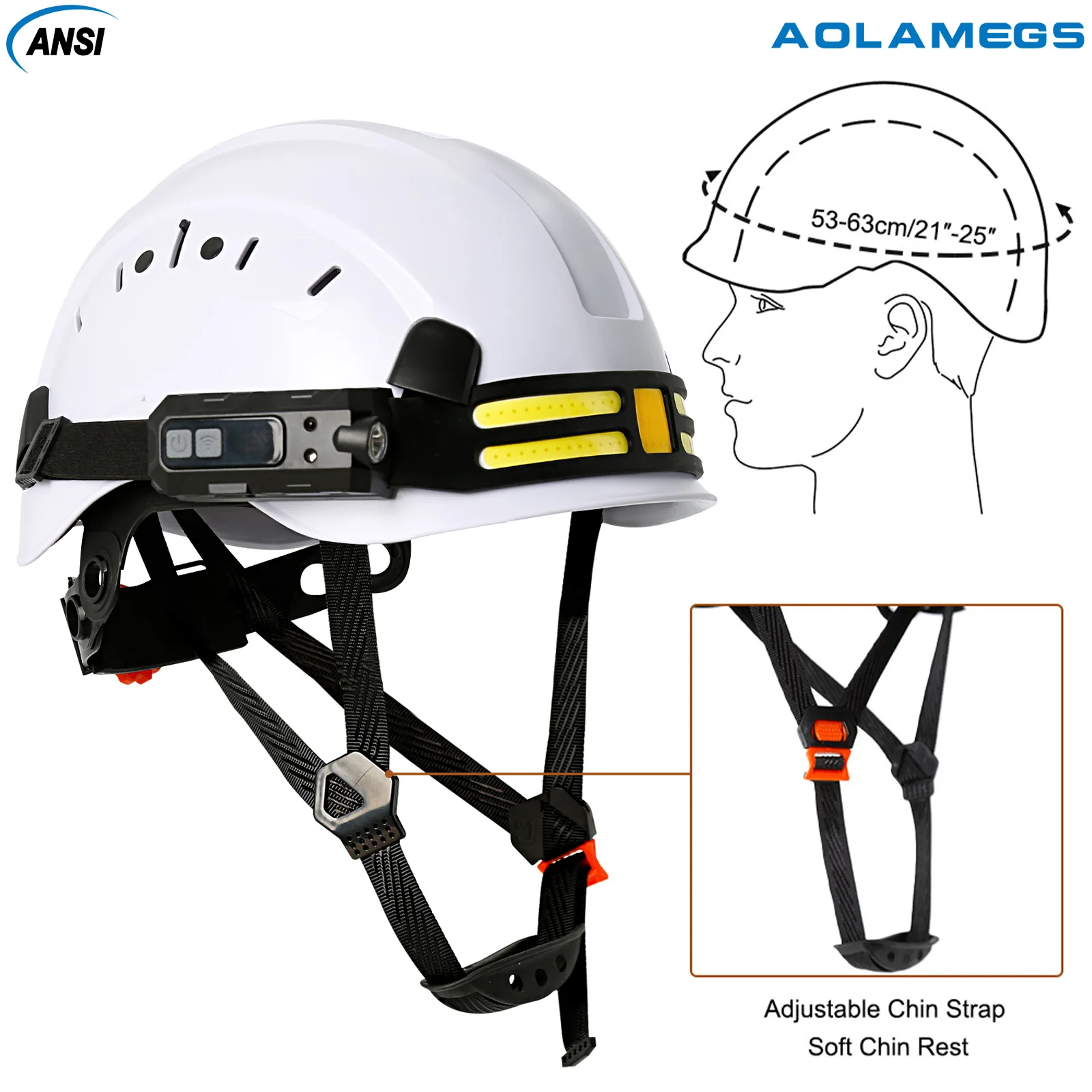 Casco de seguridad CE con tira de faro Led 3 en 1, casco duro ABS, gorro de trabajo ligero, conjunto de protección de construcción de cabeza ANSI
