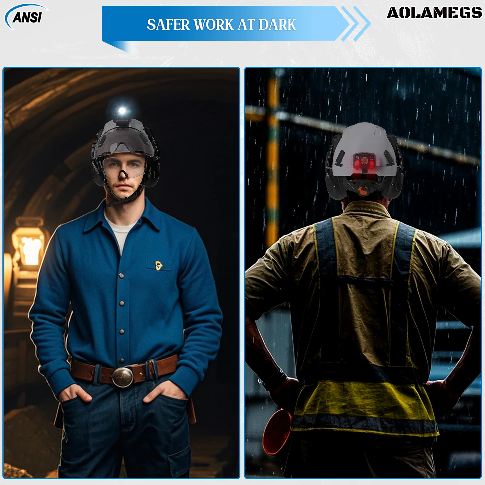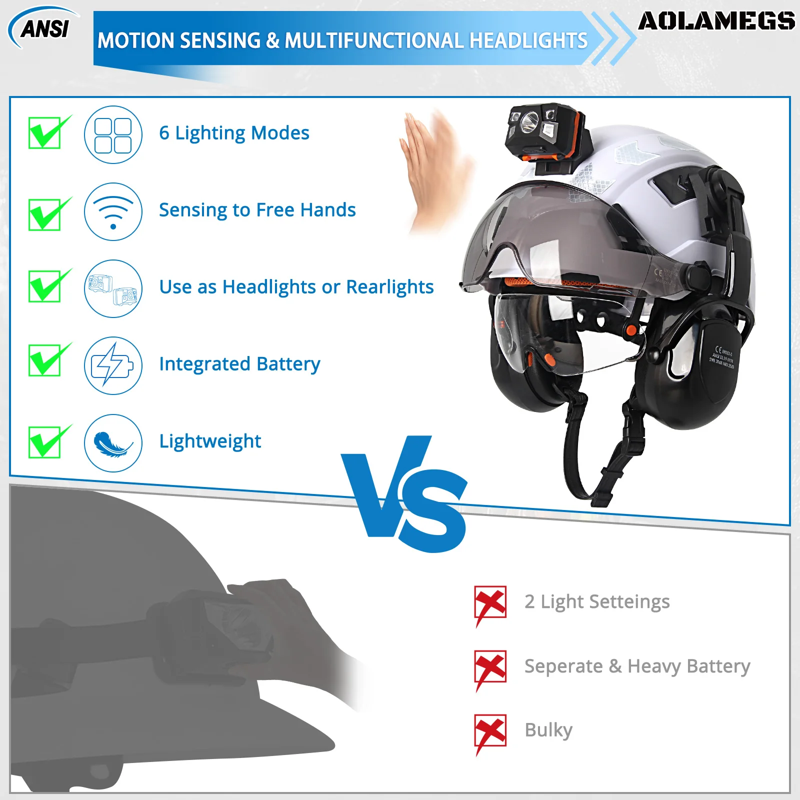 Especificación: Material: PC + ABS Forro: forro de tela Color: blanco/verde/negro Chinstrip: correa de gorra en forma de Y Interior: tela de 6 puntos Entorno aplicable: construcción/fábrica/exterior/rescate/equitación. Tamaño de la cabeza del sombrero: 52-63 cm Temperatura: -20℃ a 50℃ El casco cumple con el estándar de la UE: CE EN397: 2012+A1:2012 Las gafas cumplen con el estándar de la UE: CE EN166orejeras: CE EN352-3 Paquete: Casco+Ojeras+Lámpara de cabeza + pegatinas reflectantes