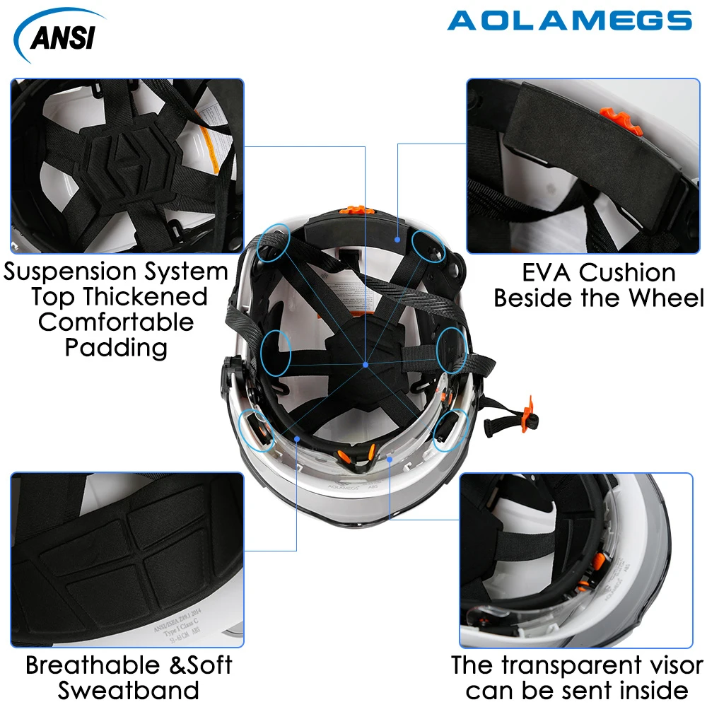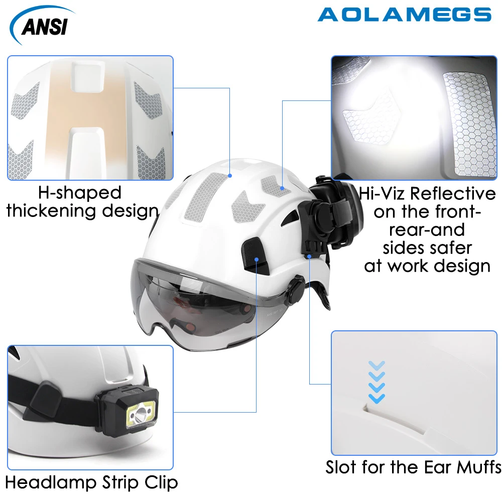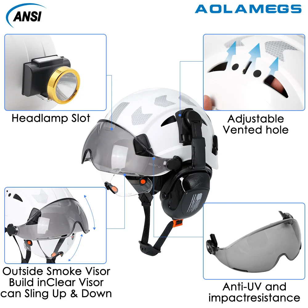 El diseño especial de ranuras laterales garantiza que el casco de seguridad instale fácilmente protección auditiva, protector facial y faro mediante bricolaje, lo que permite más protección en la cultura, minería, escalada y conducción.