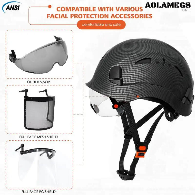 El diseño especial de ranuras laterales garantiza un casco de seguridad para instalar protección auditiva, protección facial y faro DIY fácilmente, lo que permite en la construcción más protecciones, minería, escalada y equitación.