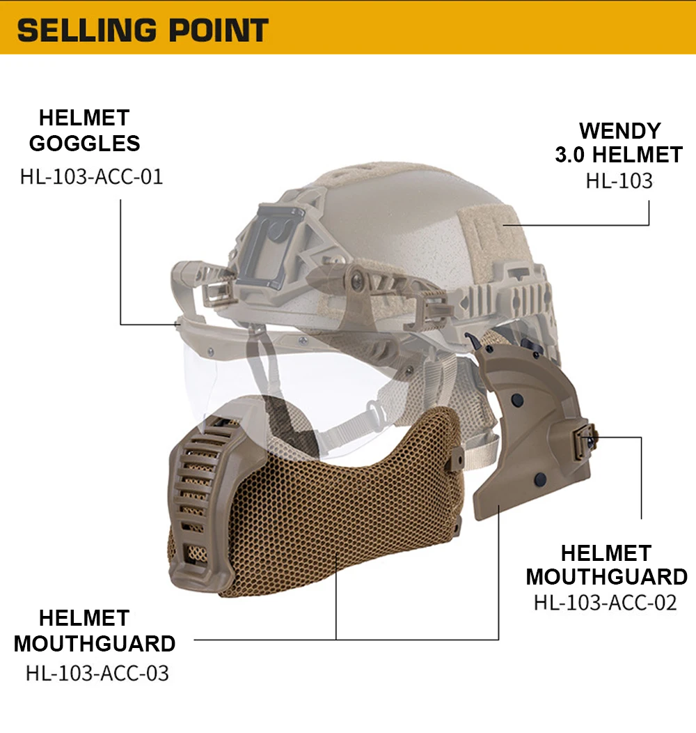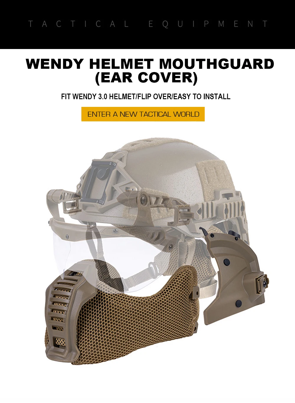 Casco táctico 3,0 Wendy, media máscara facial con casco, protección para los oídos para caza, accesorios para cascos de Paintball CS