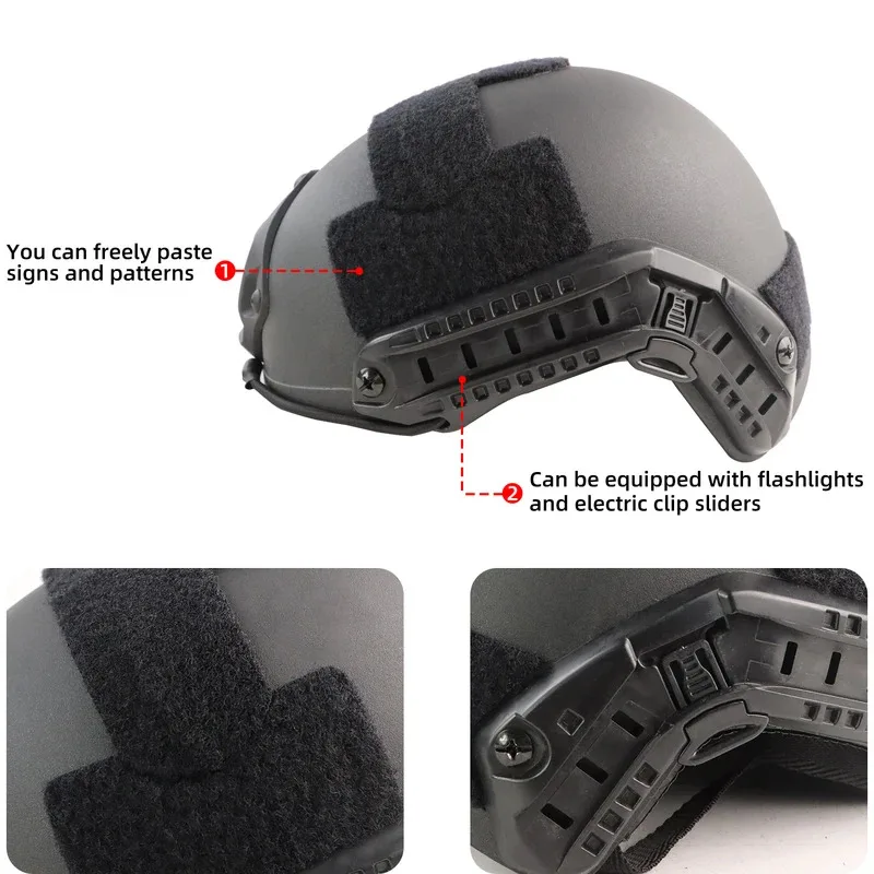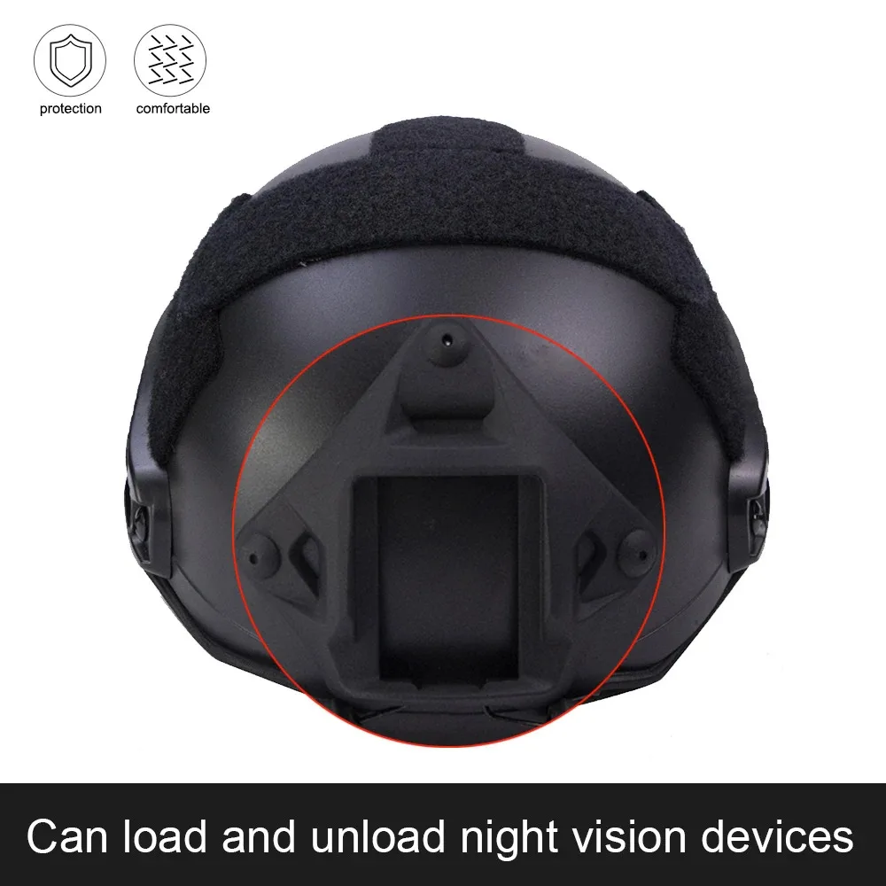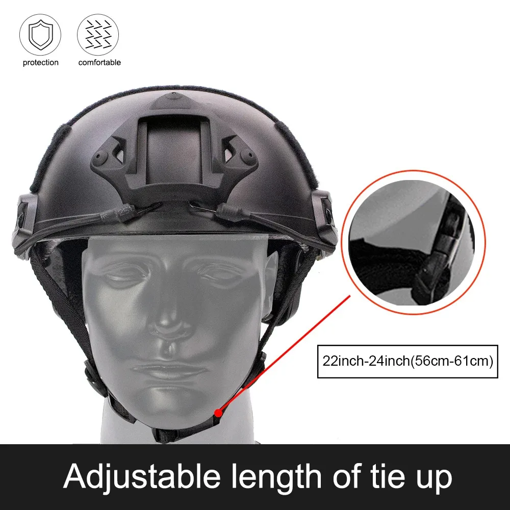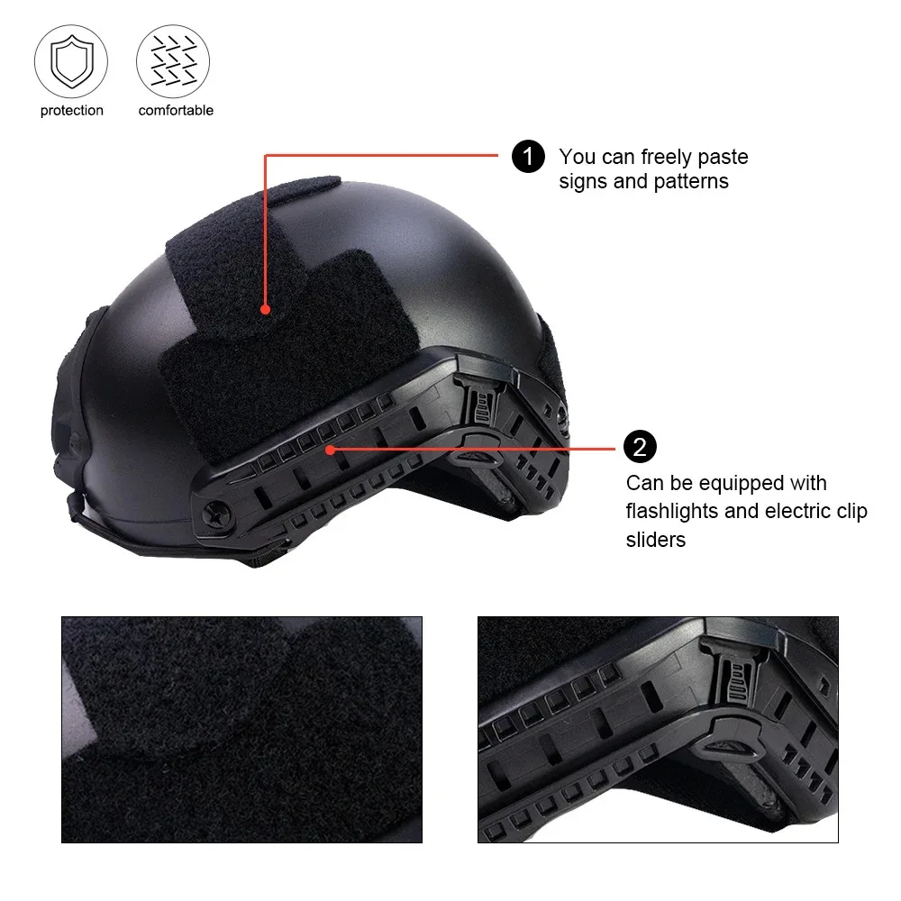 Duradero: ligero y cómodo: cascos de airsoft fabricados con plásticos de ingeniería ABS de alta calidad + plástico de espuma antisísmica EPS + velcro + nailon. El uso interno del casco es liviano y cómodo.