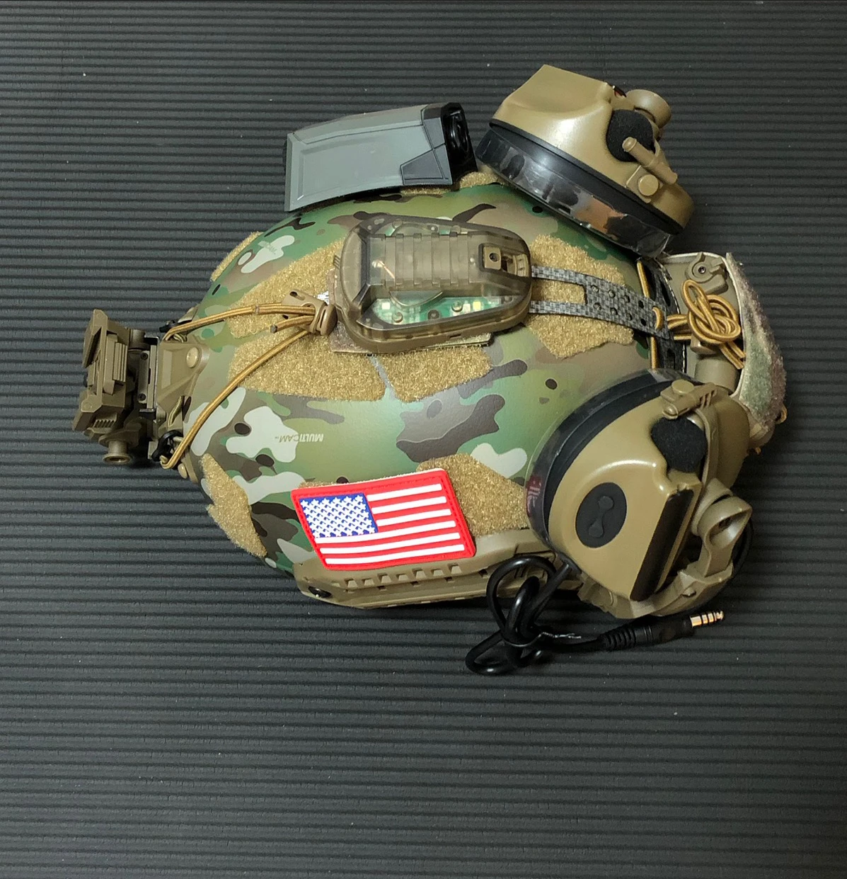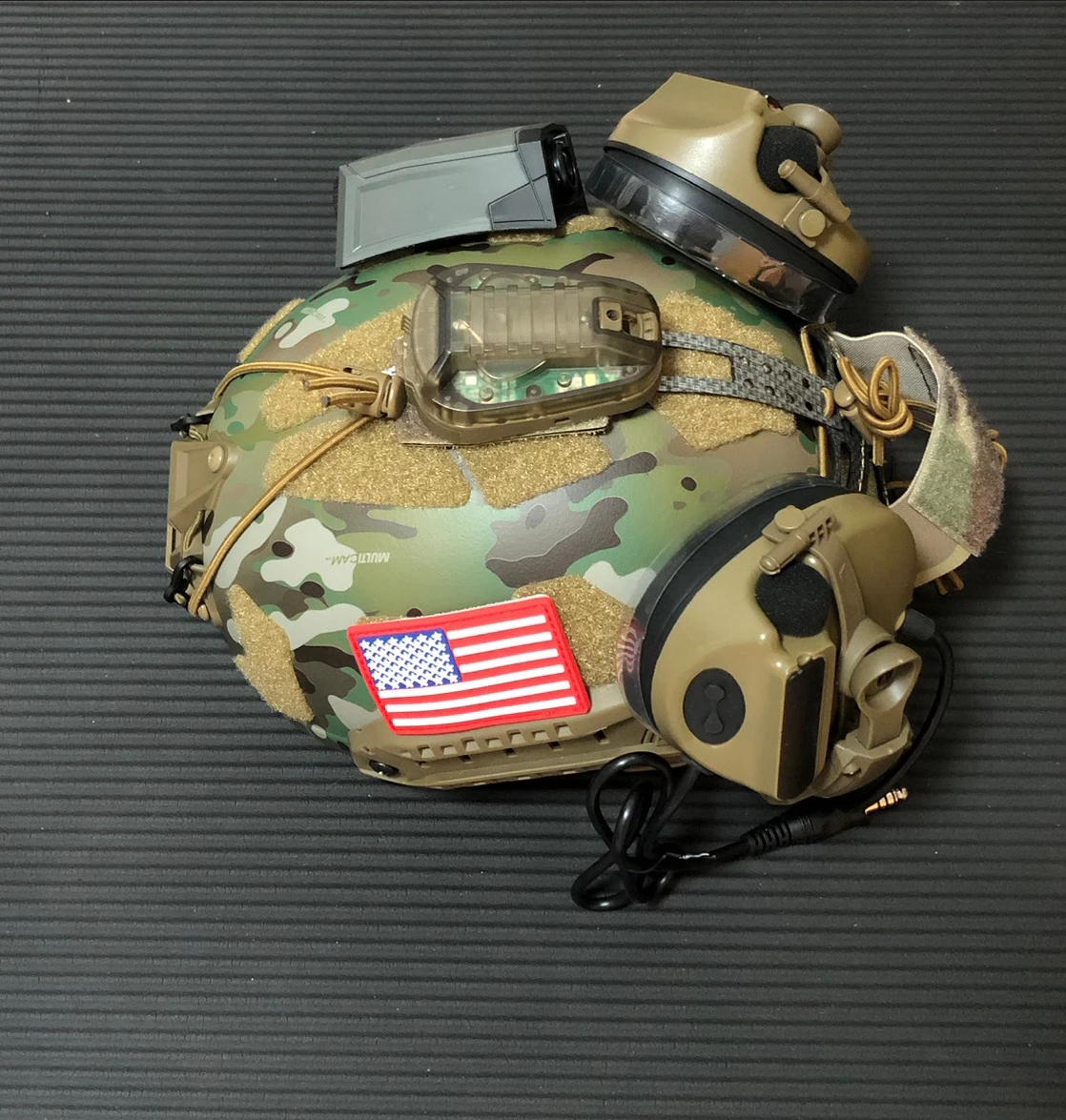 Package 1: Helmet + elastic rope battery pack + Foldable C5 tactical Headphones + Ladybug lamp +MOHOC helmet camera model
