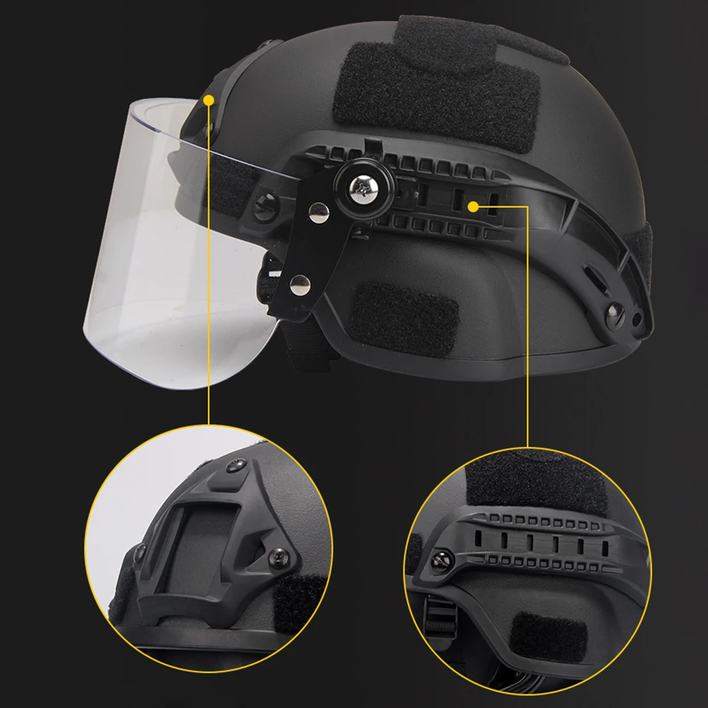Este casco táctico de paintball viene con gafas transparentes desmontables y una máscara transparente que evita que el paintball dispara a 140 m/s y es completamente seguro.
