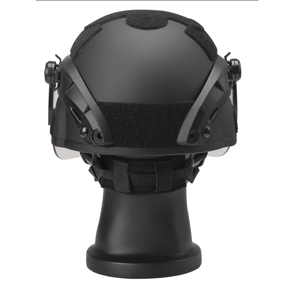 Hay 7 almohadillas ajustables para casco.Riel lateral con cubierta NVG, la fuerza resiliente de NVG es fija, cabezal de protección de alta calidad