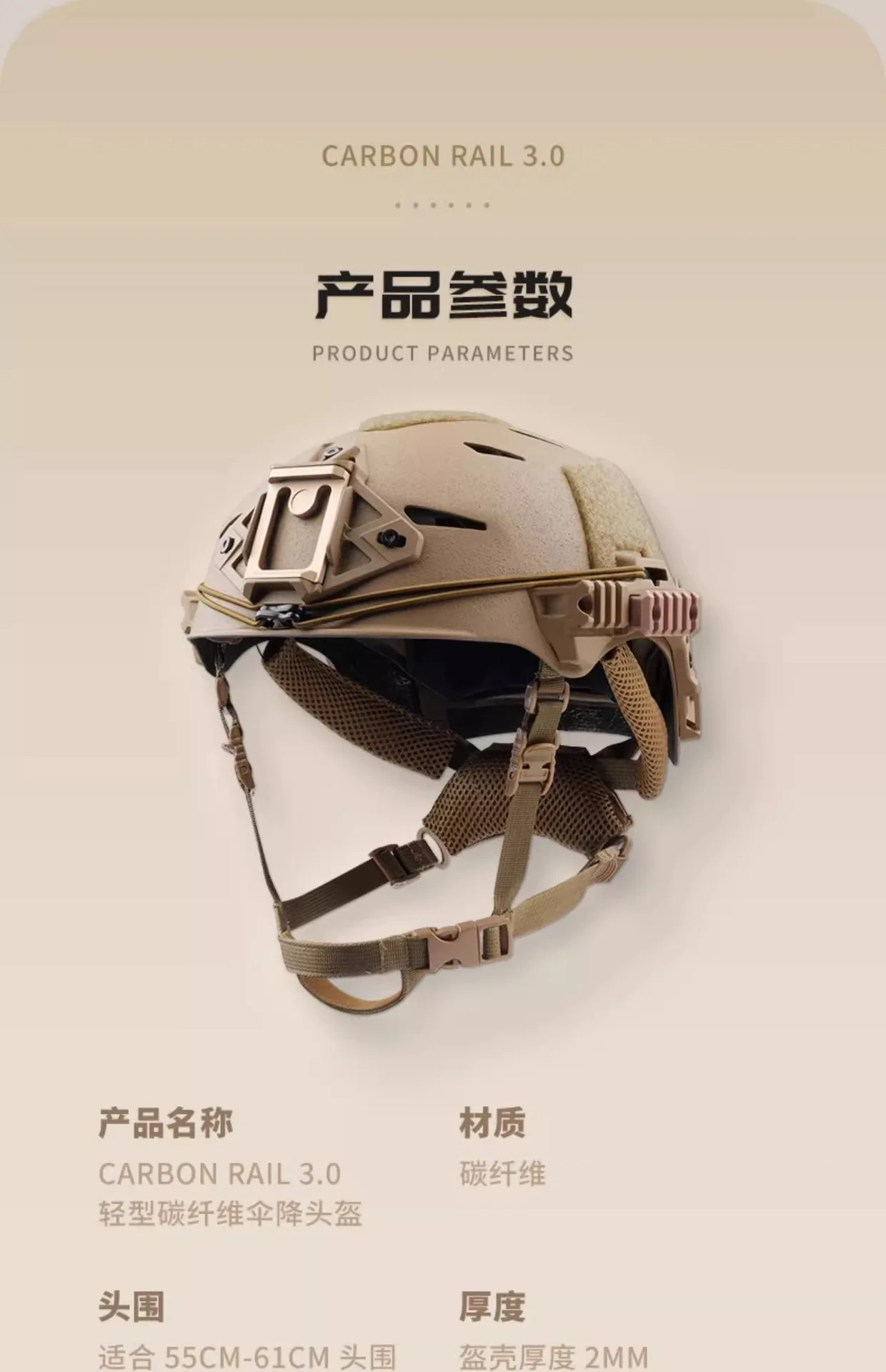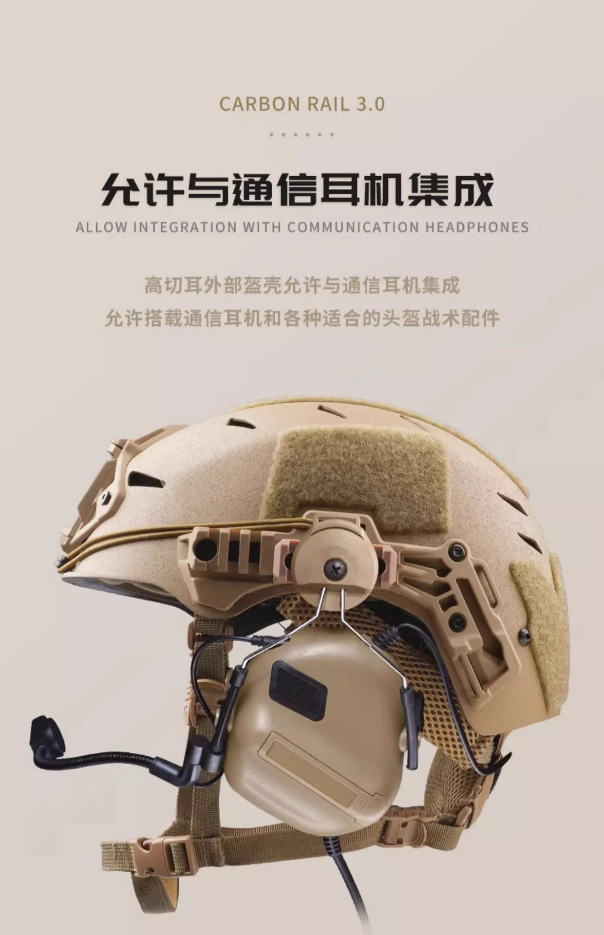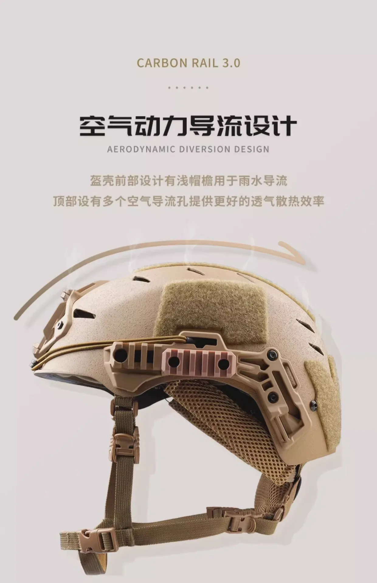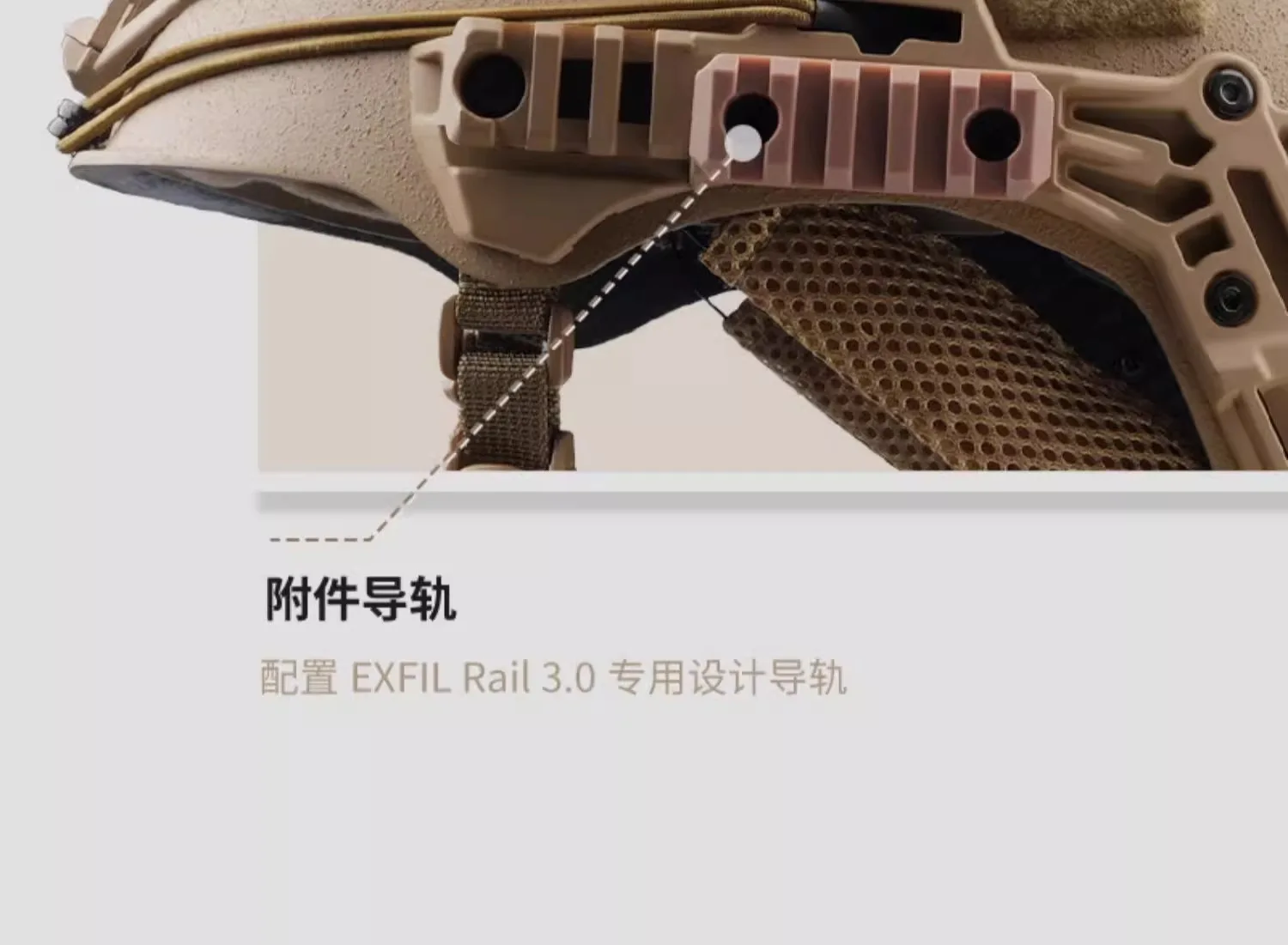 Configuración externa: Equipado con la nueva base de plástico de ingeniería del marco interior de aleación de soporte de 3 puntos Wilcox, adecuada para la función general de la mayoría de los soportes de montaje NVG, riel guía EXFIL Rail 3.0 + velcro adhesivo de superficie rugosa modular externo