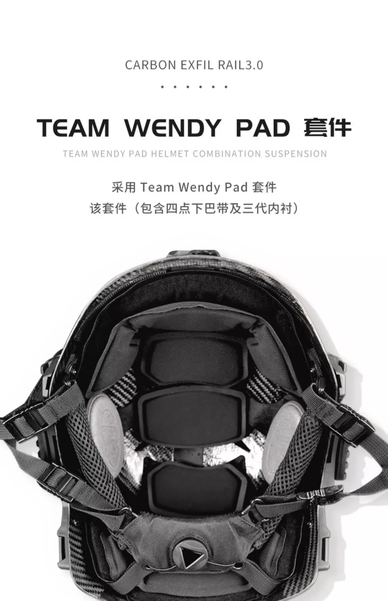 Configuración interna: Equipado con el kit Team Wendy Pad, que incluye una correa para la barbilla de cuatro puntos y un forro interior de primera generación.Diseño ampliable: permite la compatibilidad con máscaras EXFIL y protectores de barbilla.