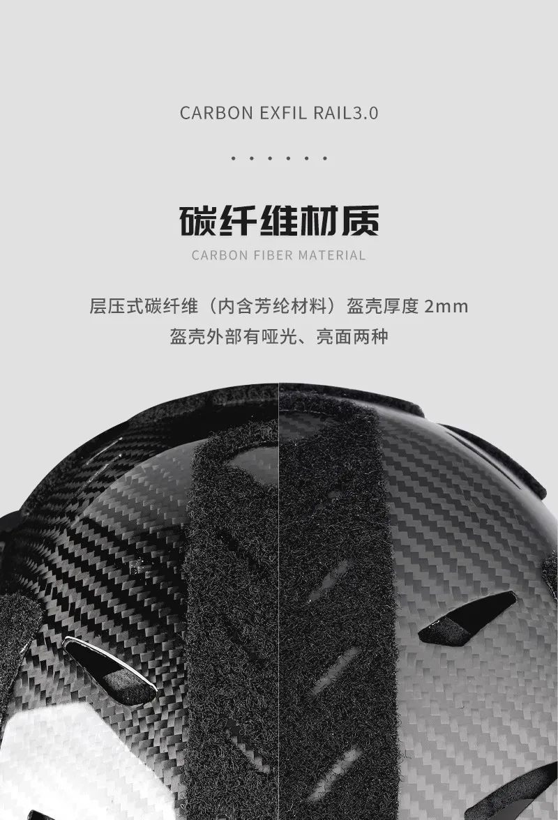 Descripción de la carcasa del casco: hecha de fibra de carbono, la carcasa del casco tiene 2 mm de espesor.