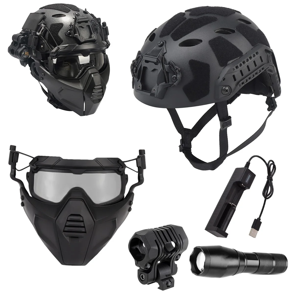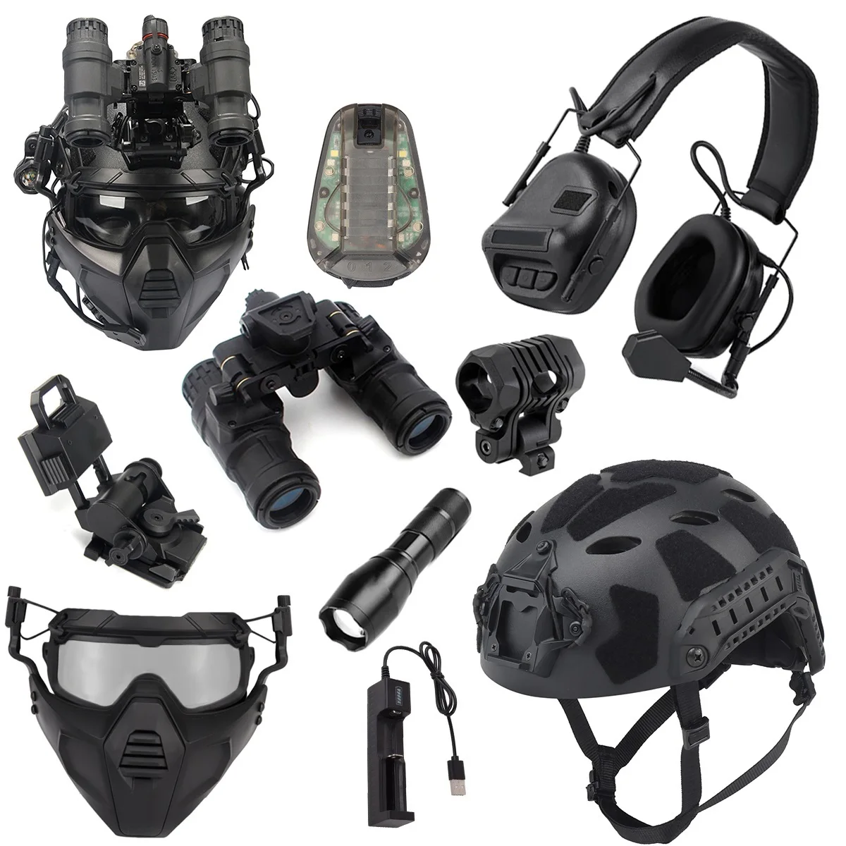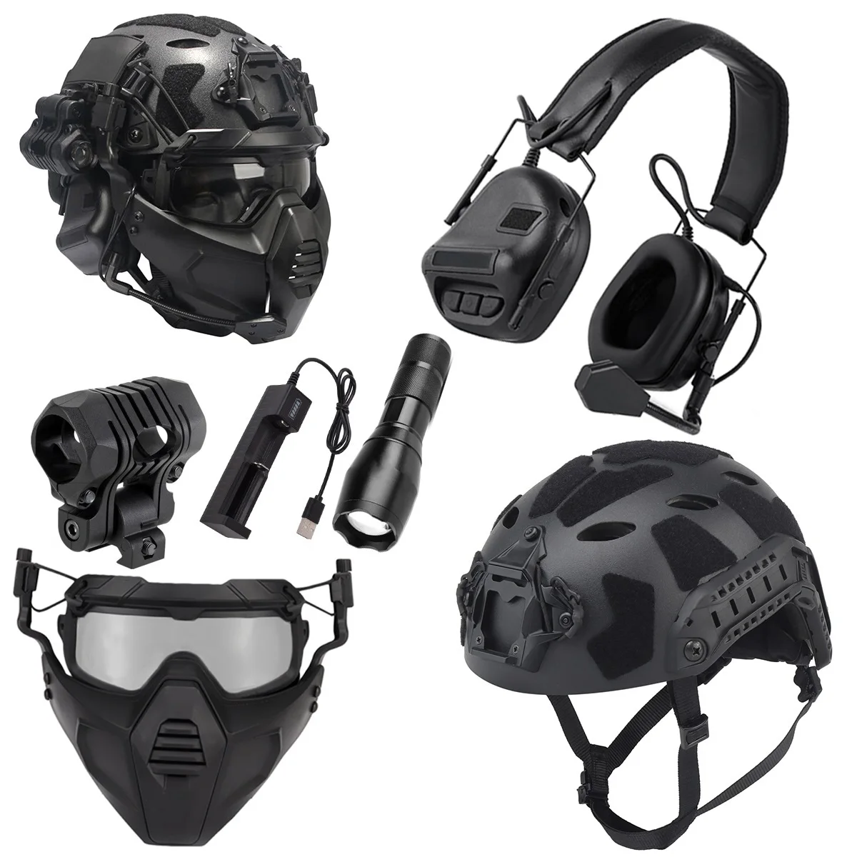 Casco táctico para airsoft y paintball Aleación de aluminio L4G24 NVG Modelo Micrófono Auriculares Gafas Máscara Linterna Juego de casco táctico
