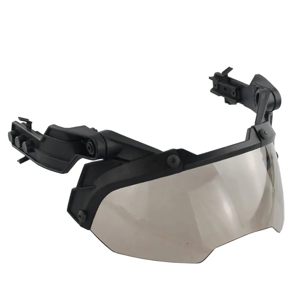 Puedes usar gafas o gafas de airsoft debajo del protector facial antidisturbios.