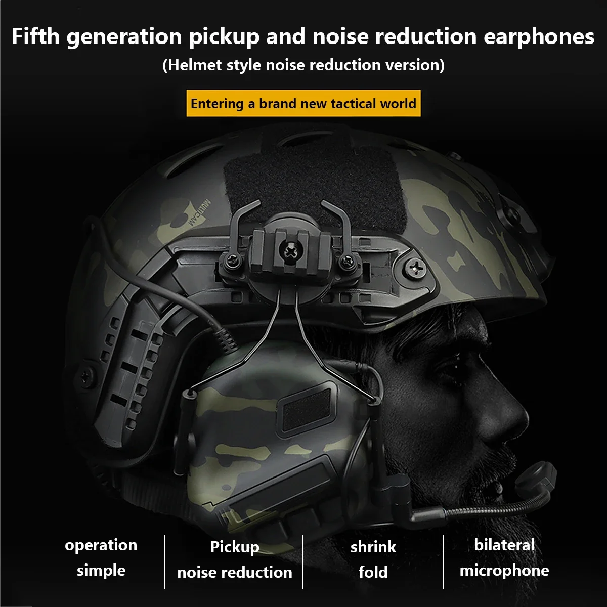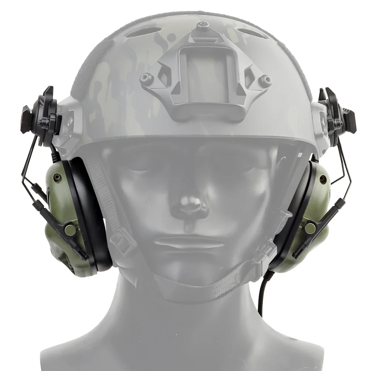 Enchufe de versión estándar militar.Con adaptador de riel para casco rápido, se puede montar directamente en el casco.Micrófono extraíble, puerto de micrófono de 2 lados conveniente para uso derecho e izquierdo.El nuevo diseño de auricular proporciona una voz clara y un soporte cómodo.Nota: Los auriculares sin función de reducción de ruido, la ranura para la batería y los botones son para decoración (sin uso).Sólo función de comunicación.Perfecto para actividades de caza con tiro de juegos de guerra al aire libre.Puede utilizar todos los elementos PTT con estos auriculares (PPT no incluido)