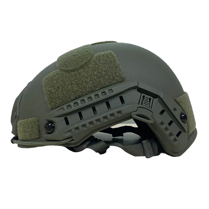 Este casco antibalas consta de una correa para la barbilla en la carcasa del casco y un sistema de suspensión en la parte superior del casco.Es liviano y se puede usar con auriculares con reducción de ruido.El interior del casco antibalas tiene un sistema ajustable que es cómodo y tiene potentes funciones de amortiguación.El lado exterior del casco está equipado con una pista retráctil.