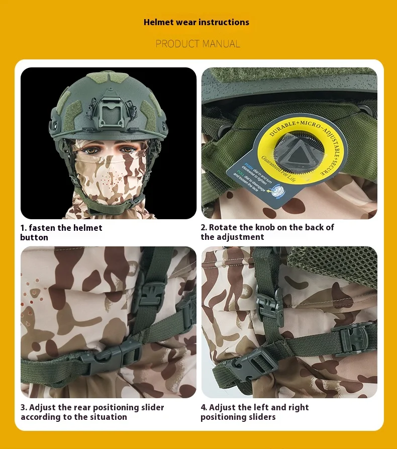 Hay un sistema ajustable dentro del casco a prueba de balas, que es cómodo y tiene una fuerte función de amortiguación.