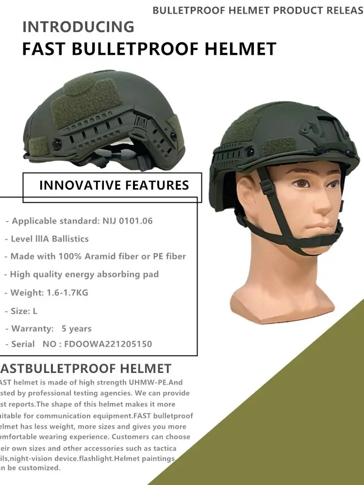 Este es un nuevo casco antibalas de camuflaje de aramida clase IIIA.