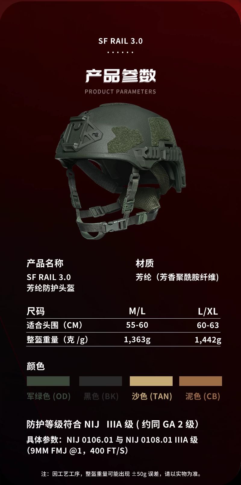 Nombre del producto Casco protector de aramida SF RAIL 3.0