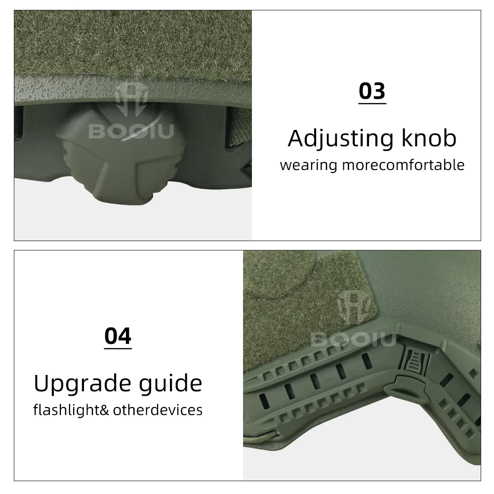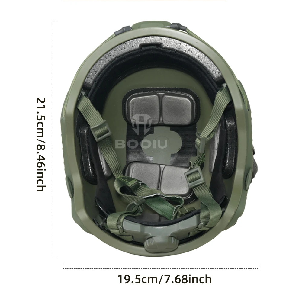 El sistema de riel modular admite accesorios: gafas, luces tácticas, auriculares