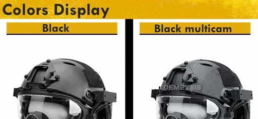 ● Los dos rieles laterales del casco táctico son compatibles con otros equipos, como clips de correa para gafas, linternas, escudos NVG, Cámaras Deportivas.