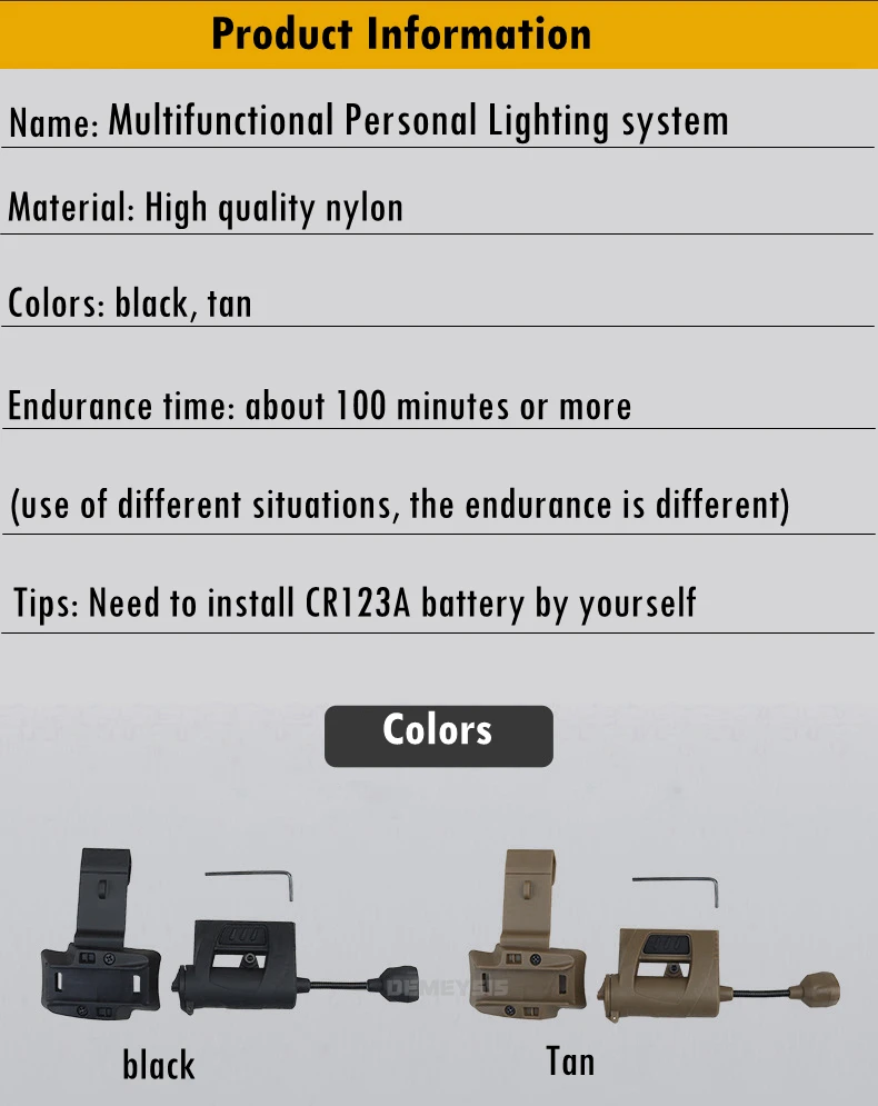 ✔ Colores: Negro/Tanado/Verde| Batería: CR123A (no incluido)