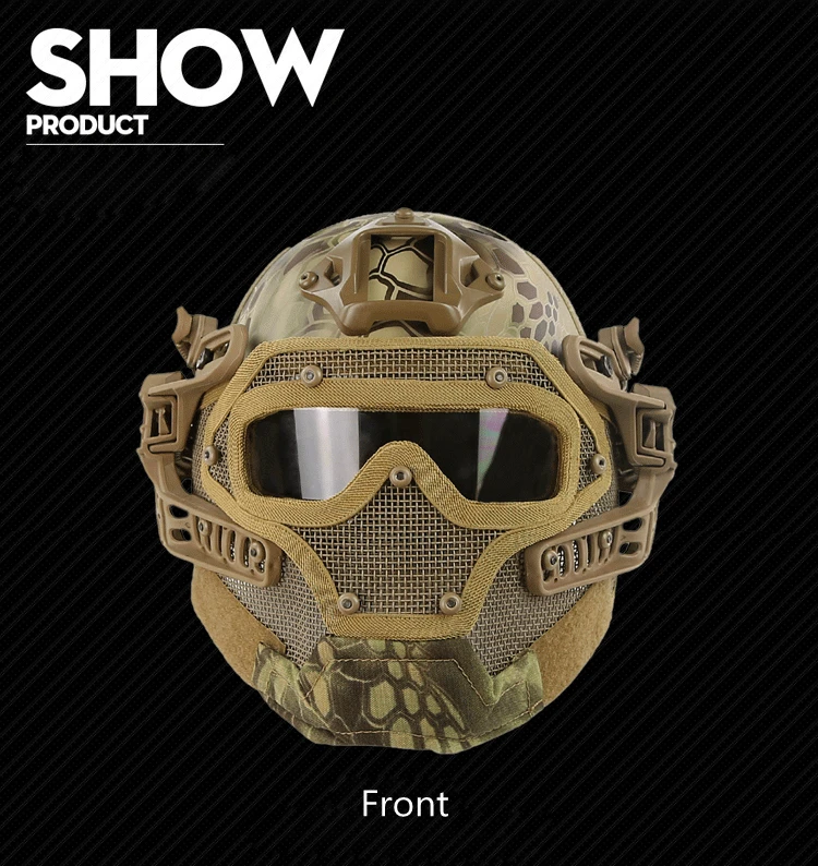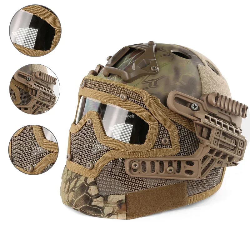 Casco táctico completamente cubierto con lente HD Airsoft Paintball deportes cascos protectores combate CS tiro casco de seguridad