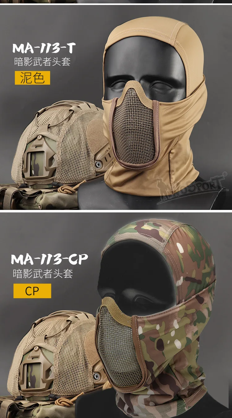 Casco táctico Cs de Color sólido de poliéster de malla de alambre, alta elasticidad, transpirable, absorbe la humedad, para acampar al aire libre